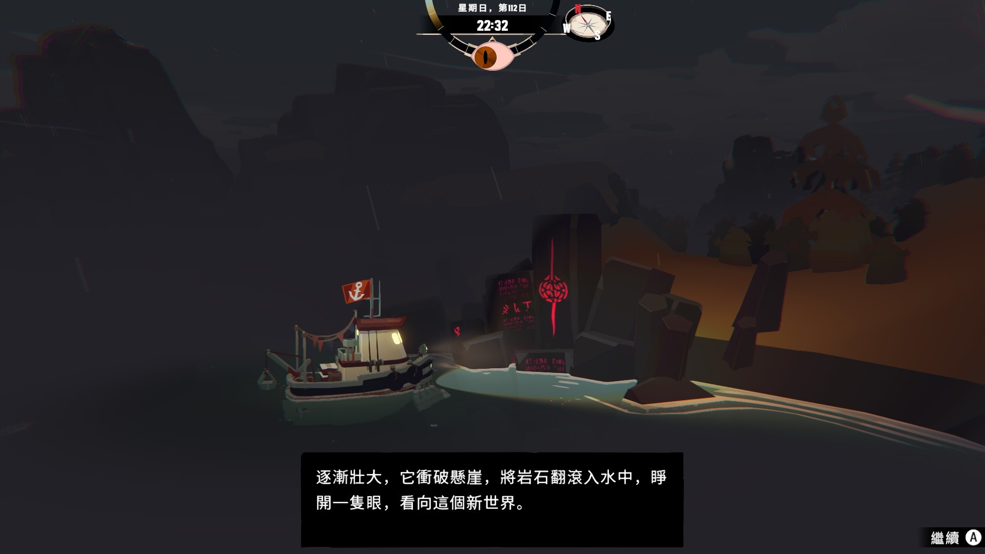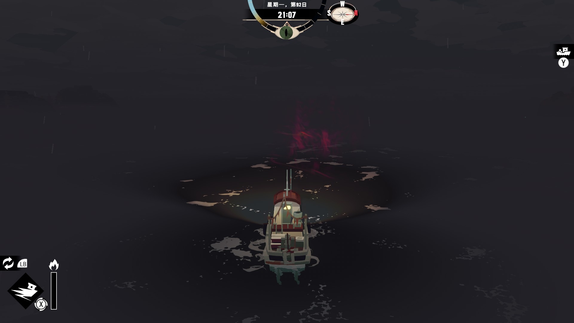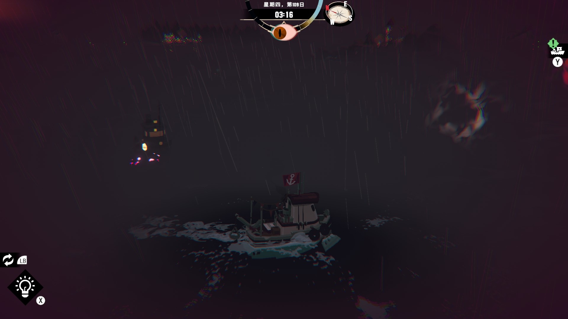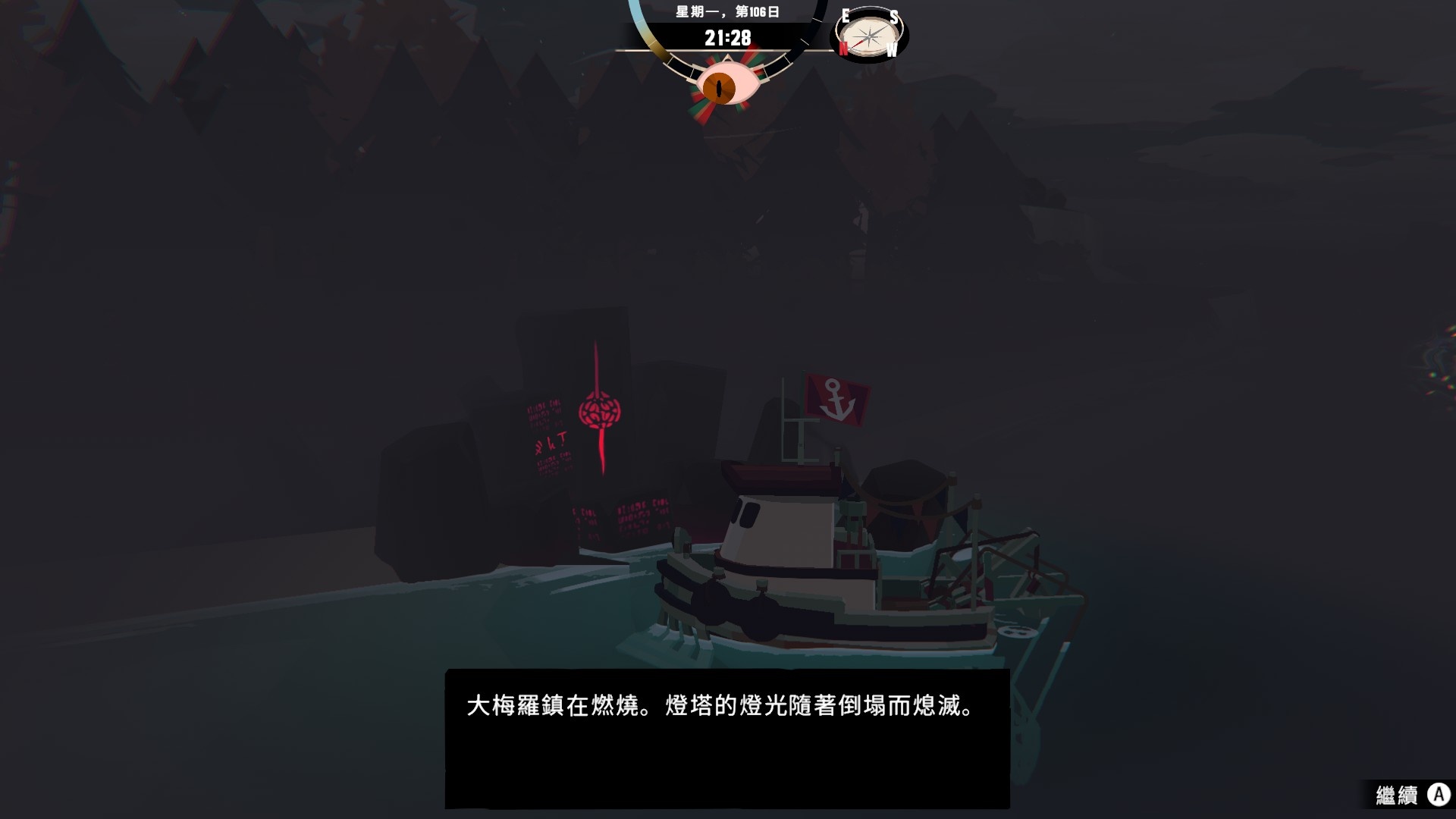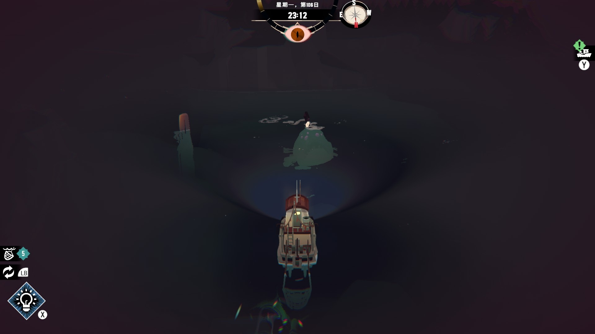 然後一旦入夜,整片海域都會開始浮現異常,莫名的迷霧、詭異的低語、忽然冒出的礁石,潛伏的詭異威脅逐漸浮出海面,遠方的漁船正對你鳴笛,那究竟是友善的同行,亦或是......?