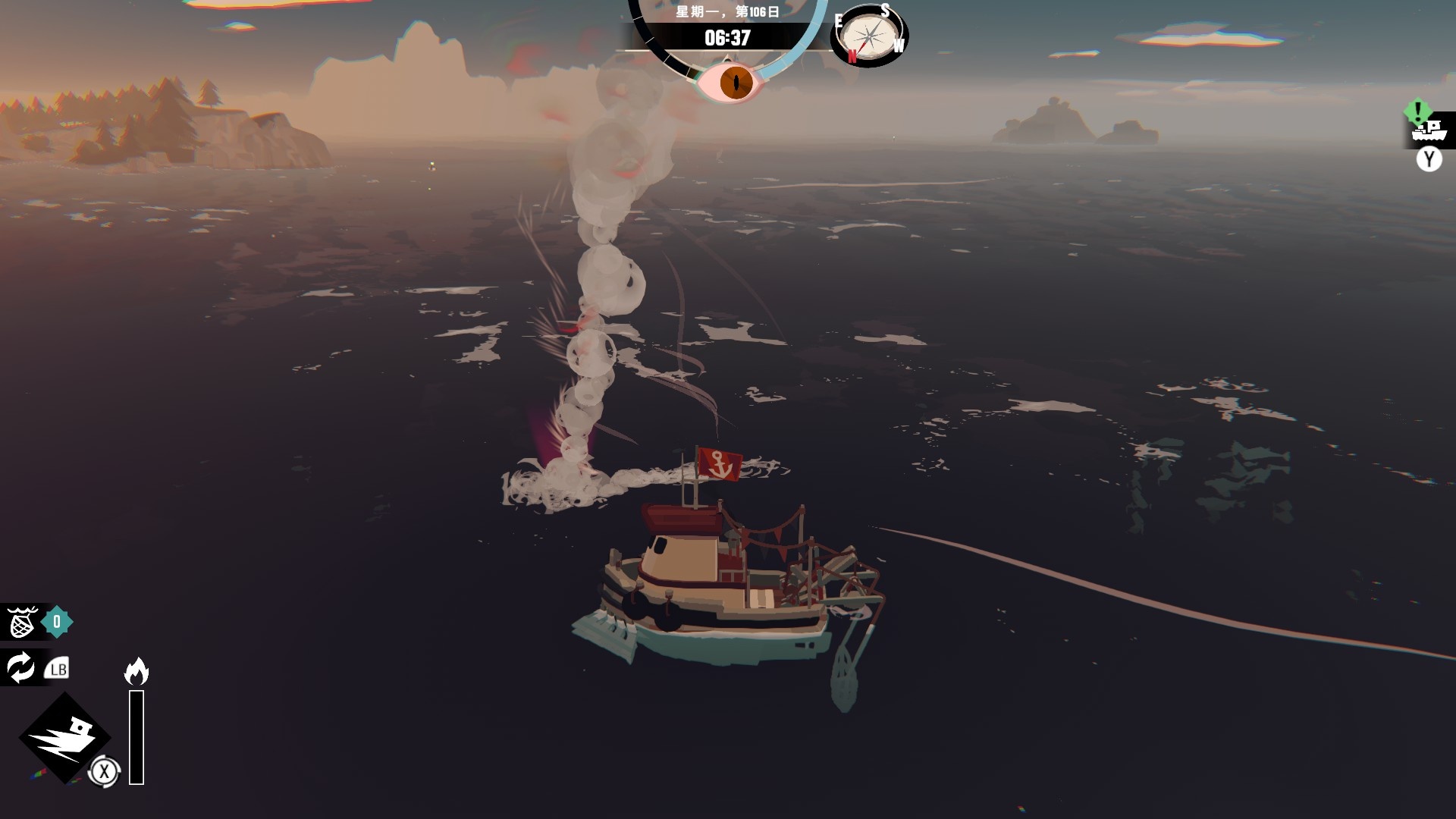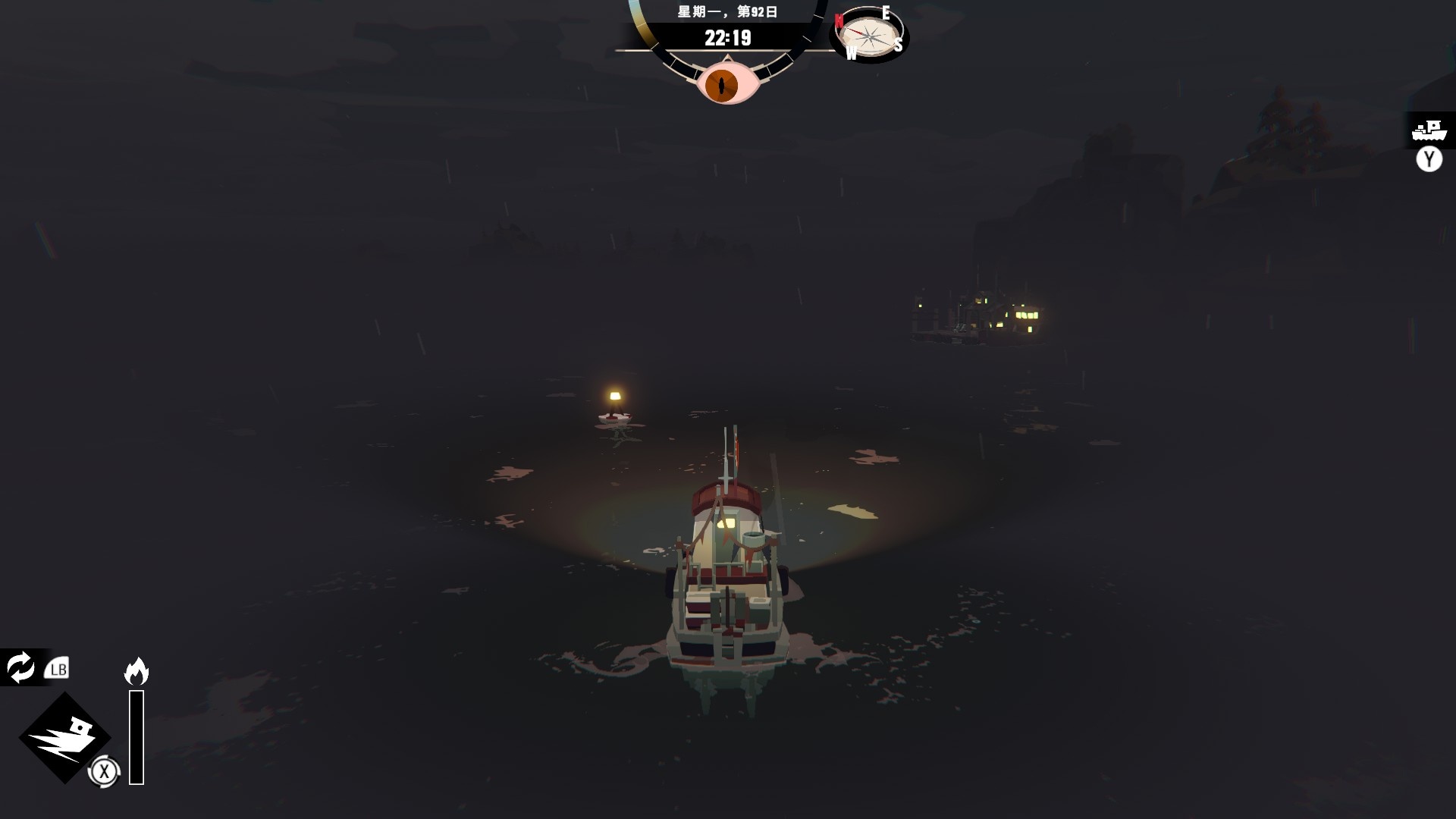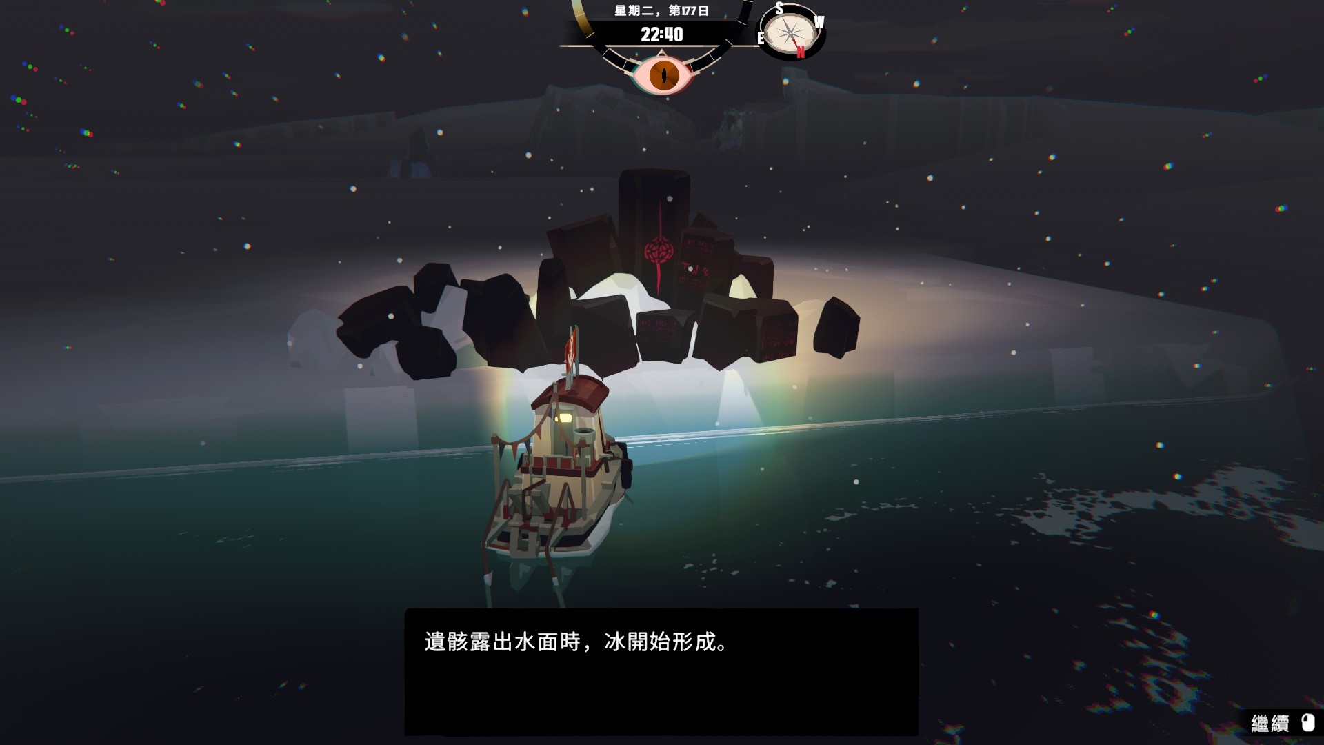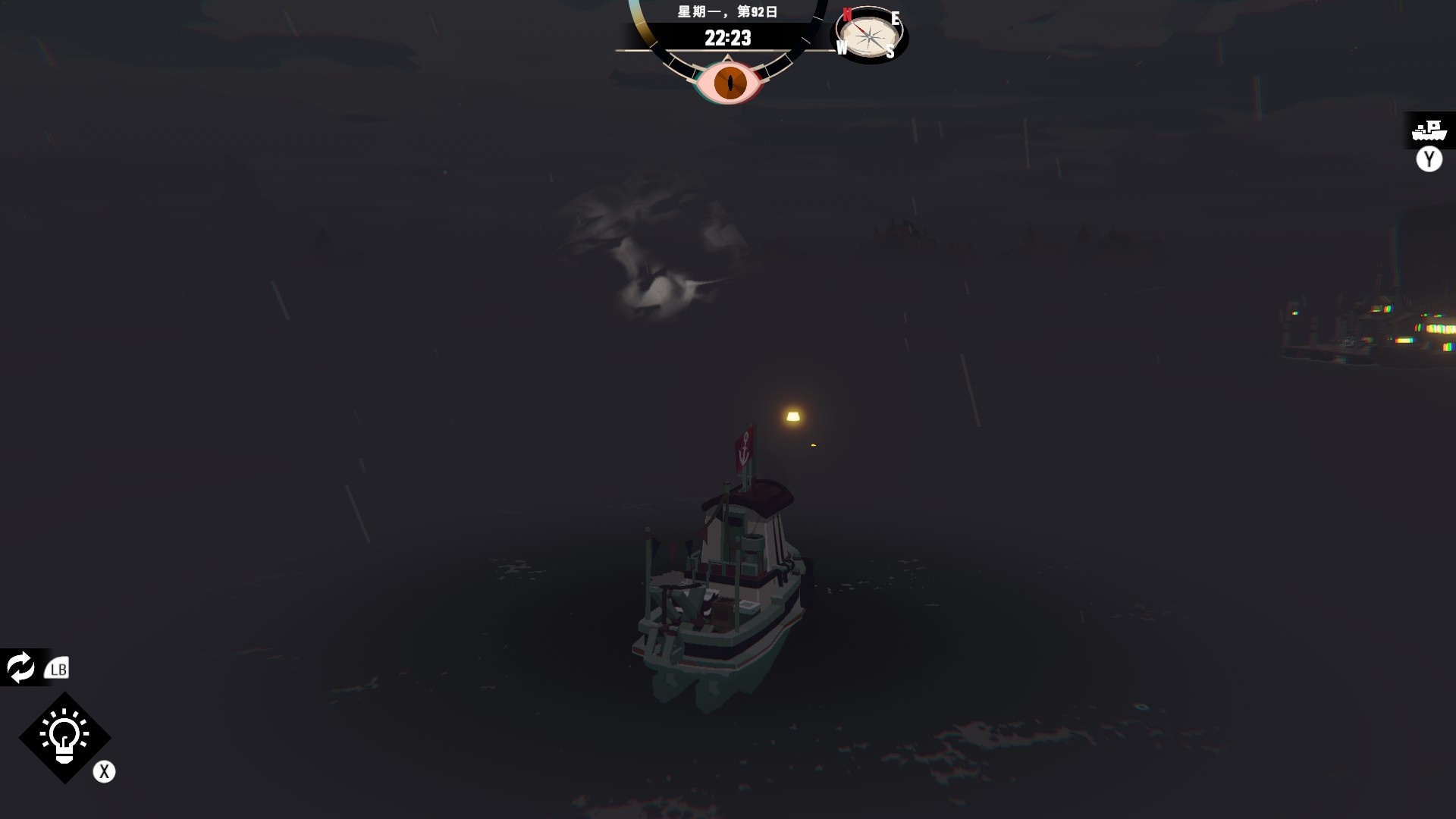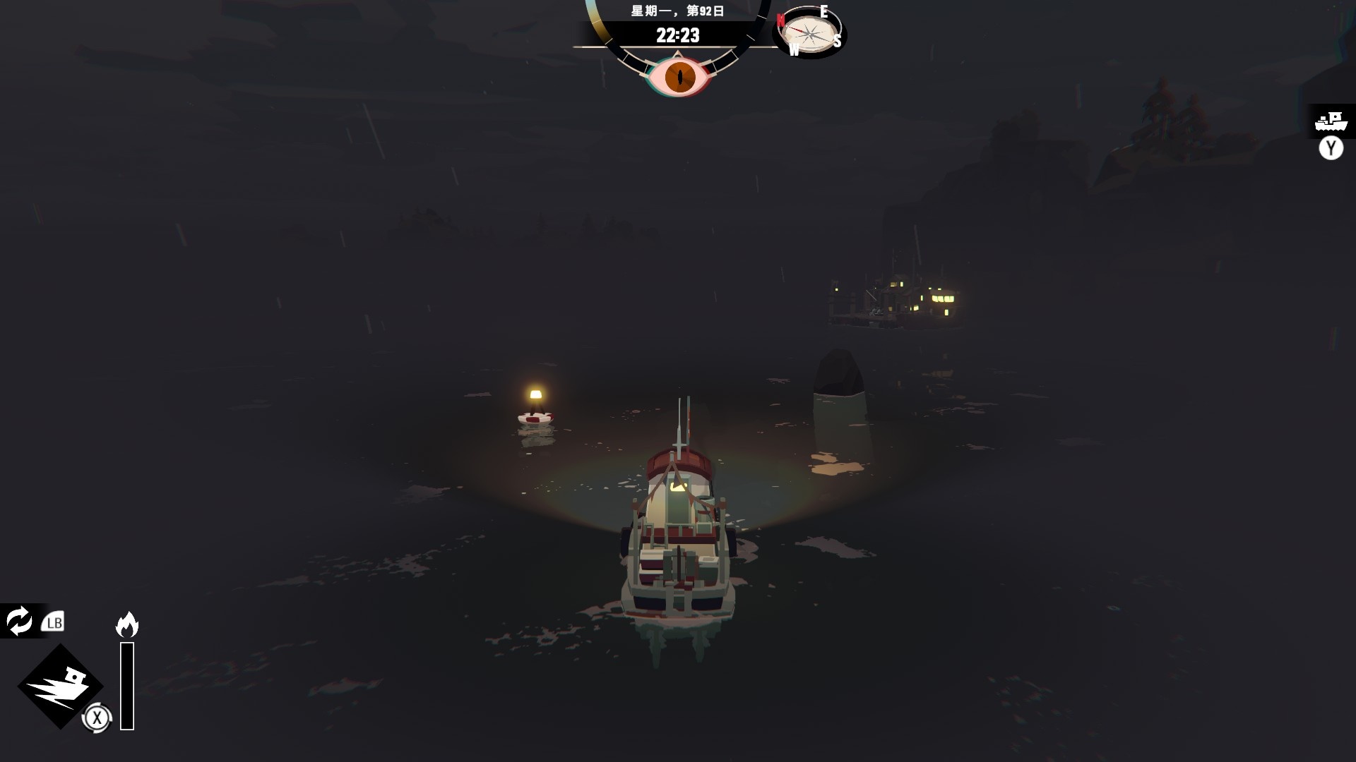 然後一旦入夜,整片海域都會開始浮現異常,莫名的迷霧、詭異的低語、忽然冒出的礁石,潛伏的詭異威脅逐漸浮出海面,遠方的漁船正對你鳴笛,那究竟是友善的同行,亦或是......?