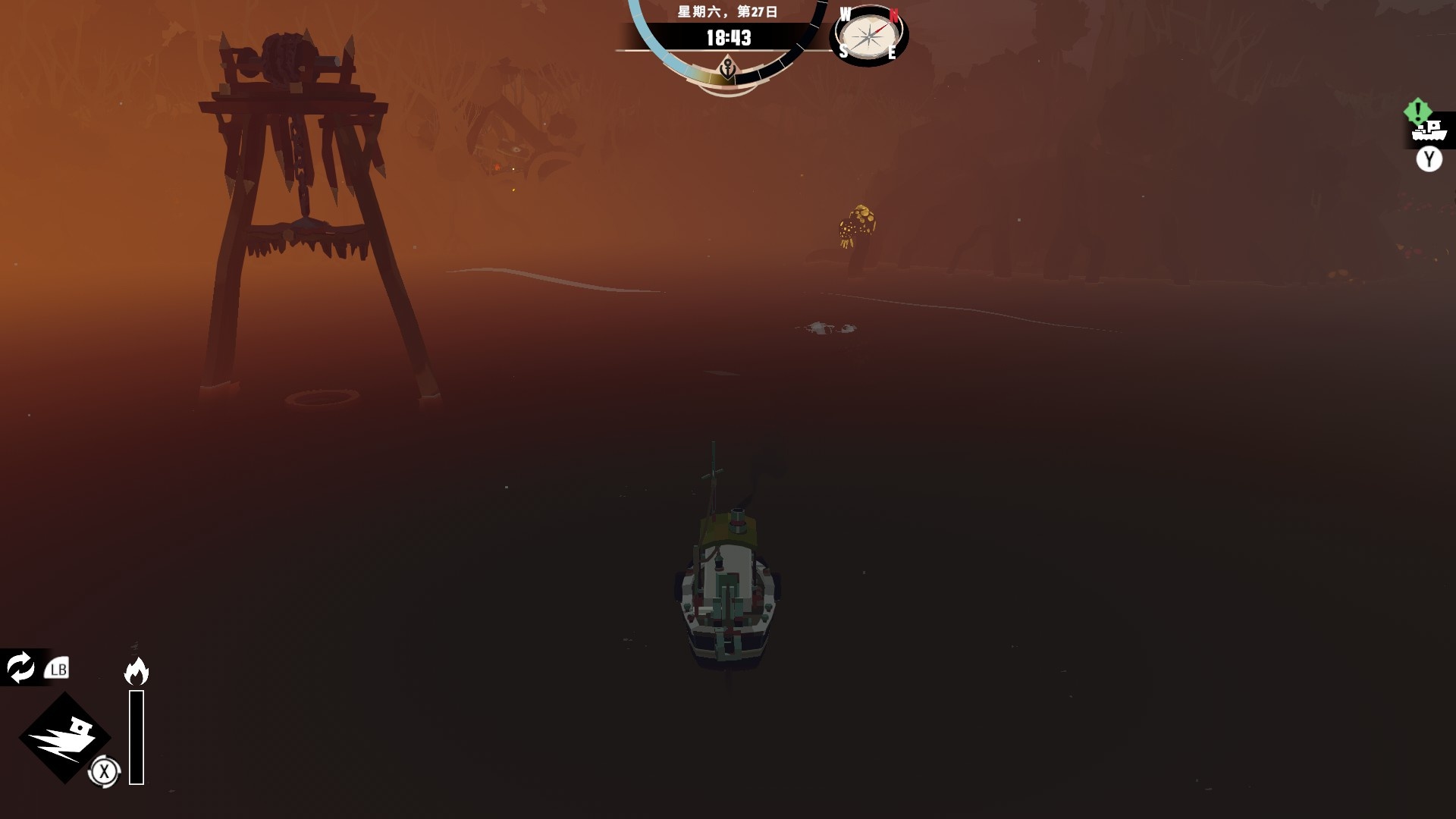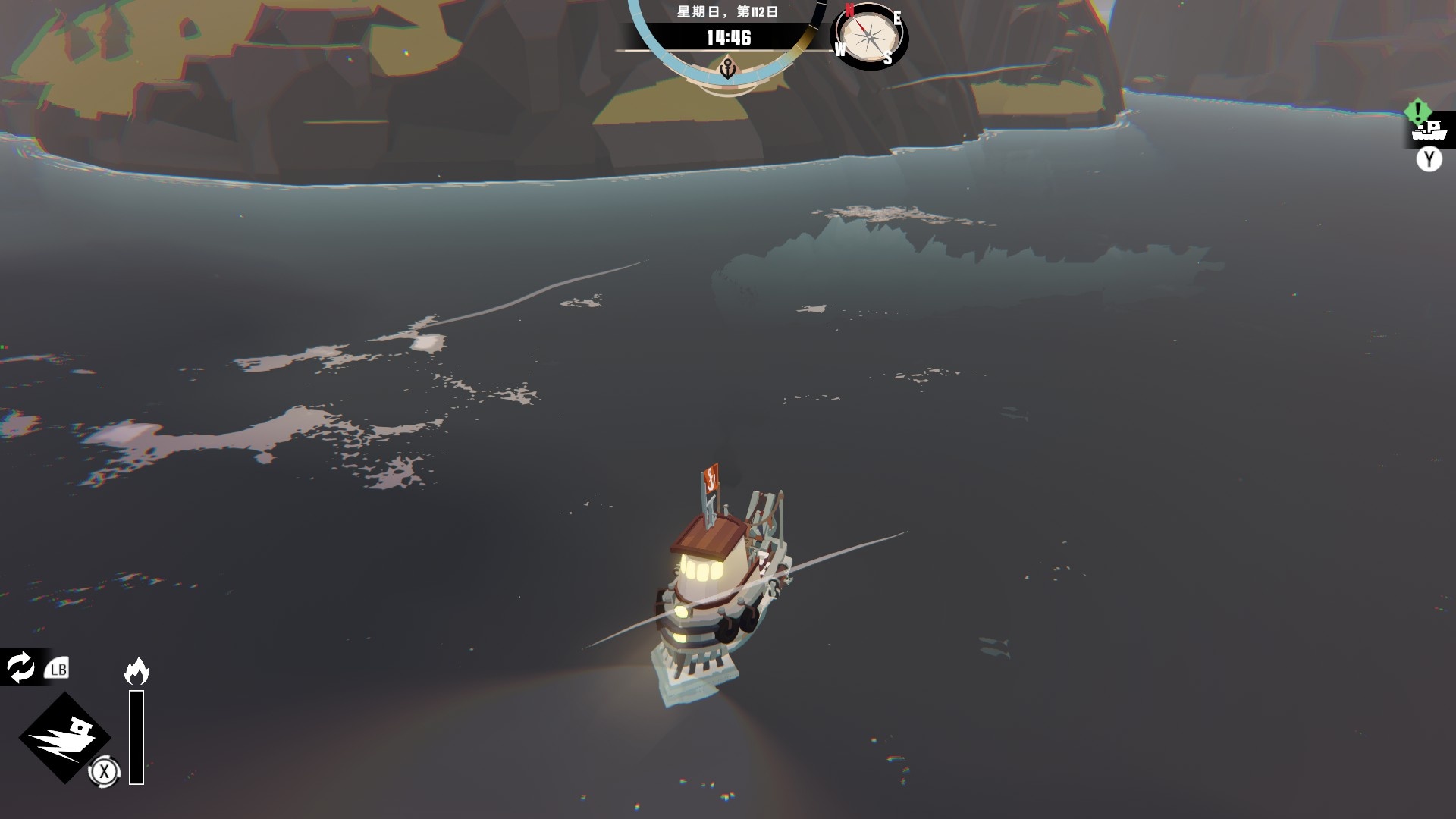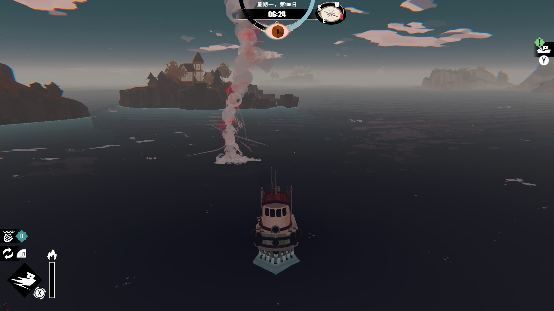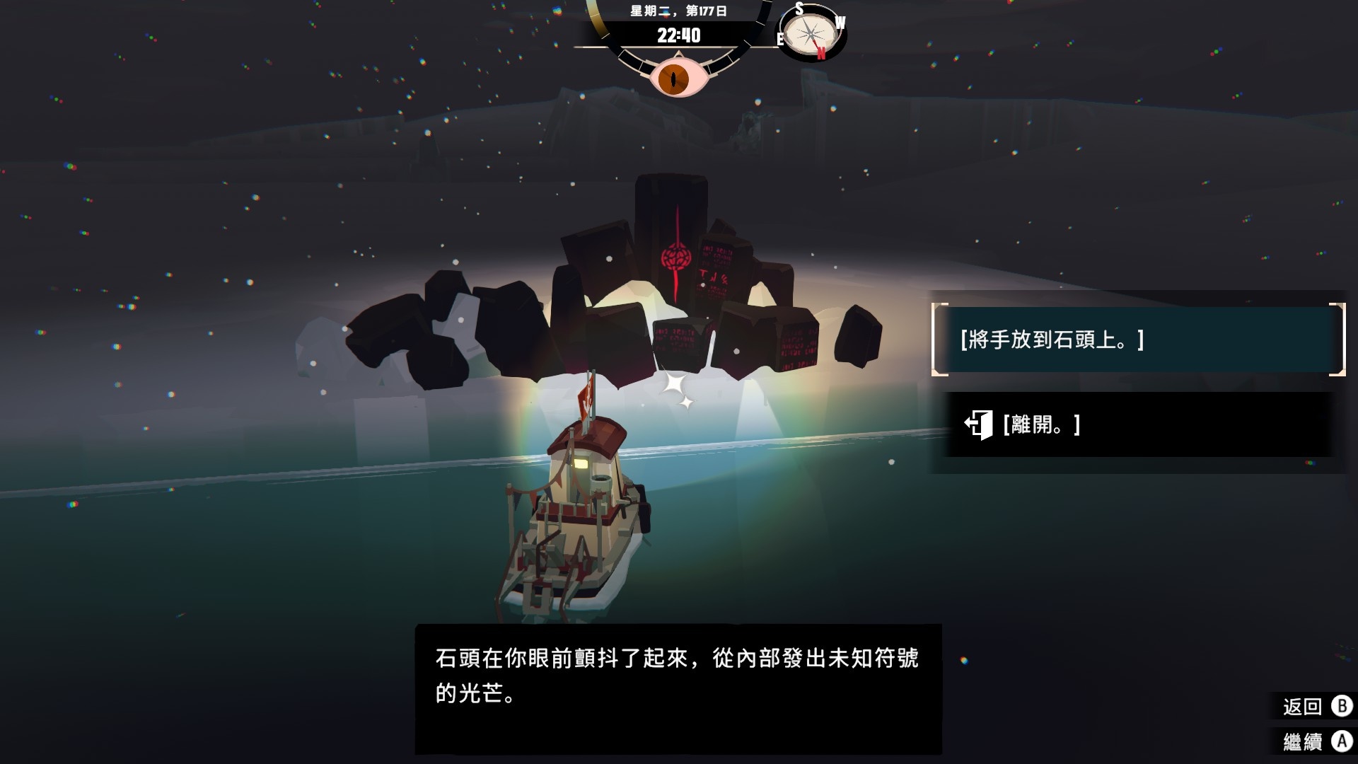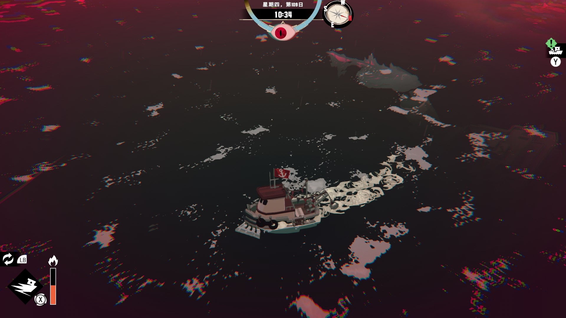 然後一旦入夜,整片海域都會開始浮現異常,莫名的迷霧、詭異的低語、忽然冒出的礁石,潛伏的詭異威脅逐漸浮出海面,遠方的漁船正對你鳴笛,那究竟是友善的同行,亦或是......?
