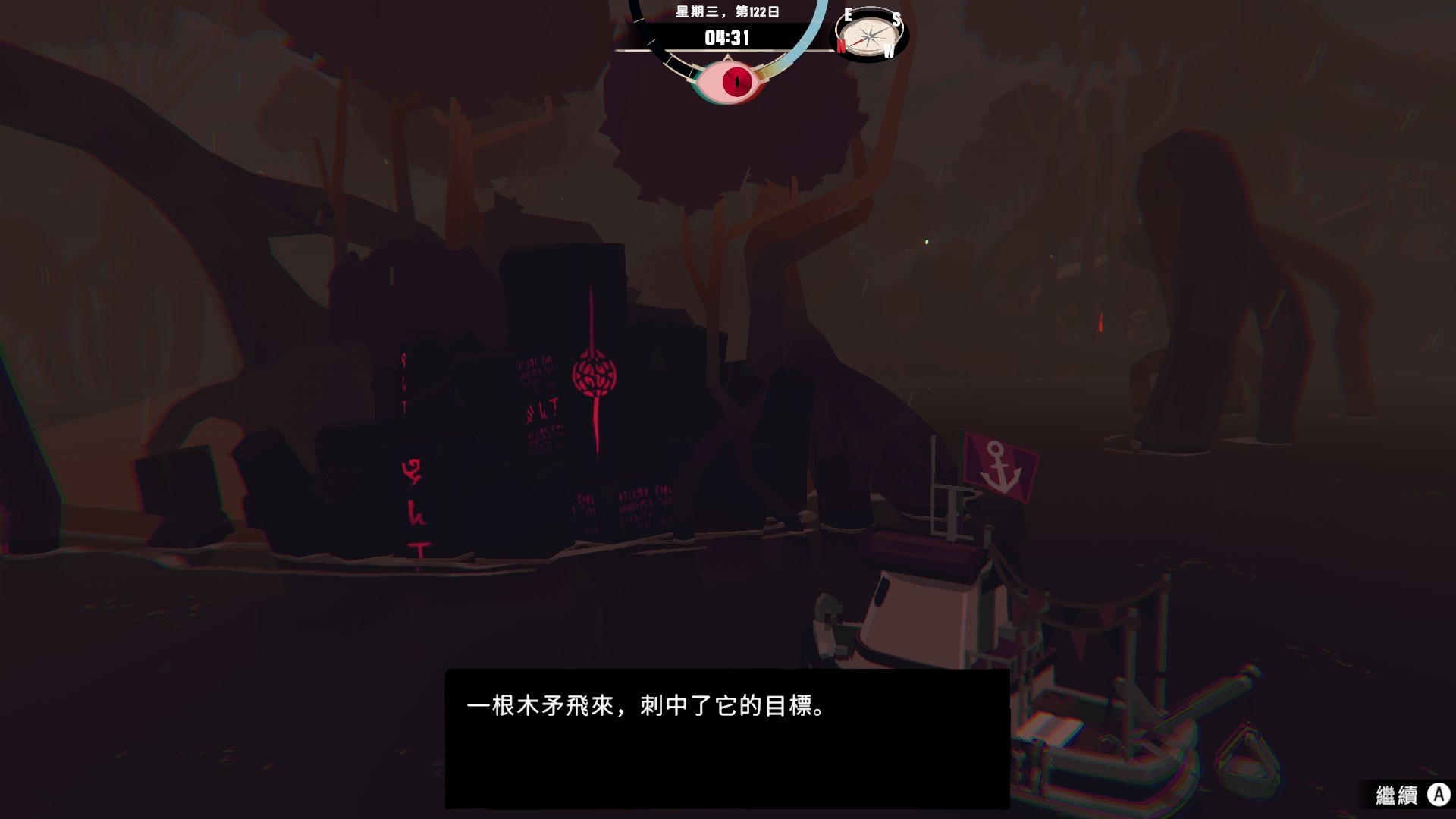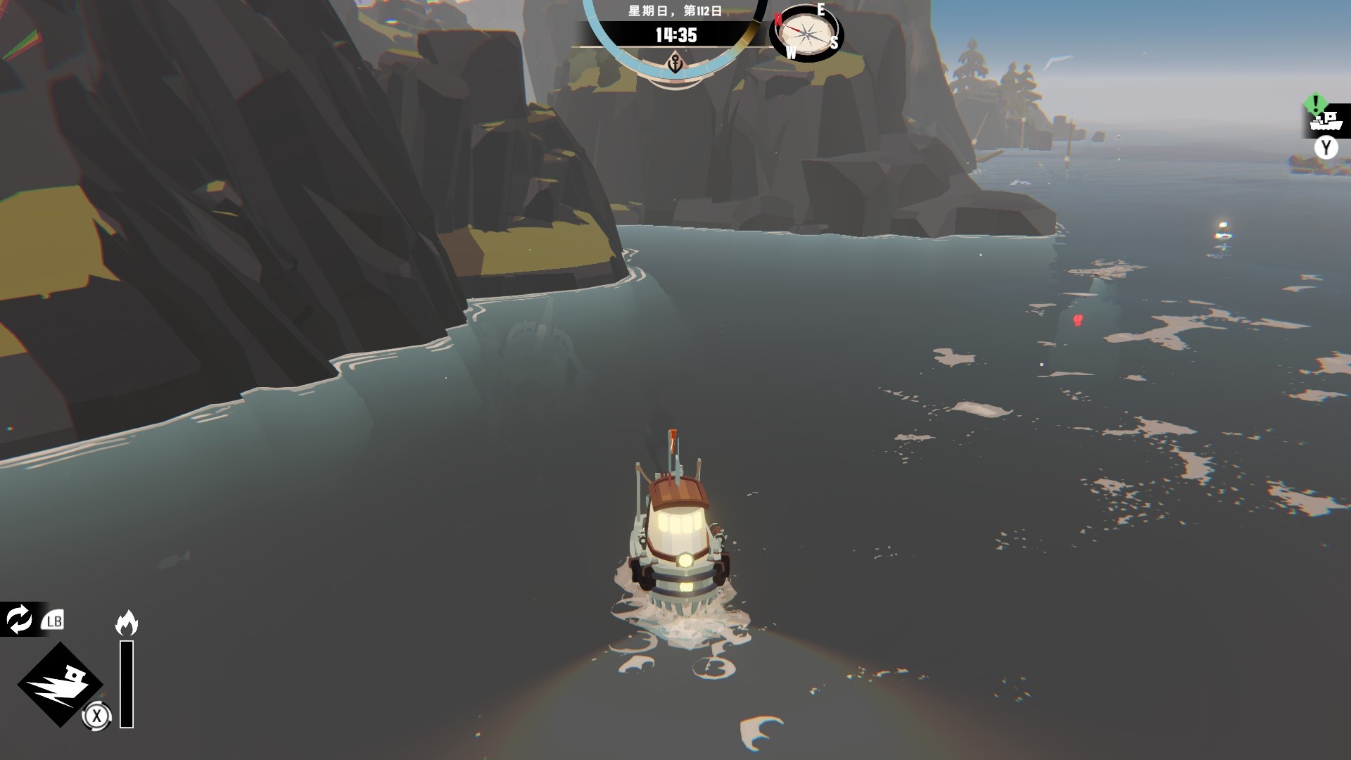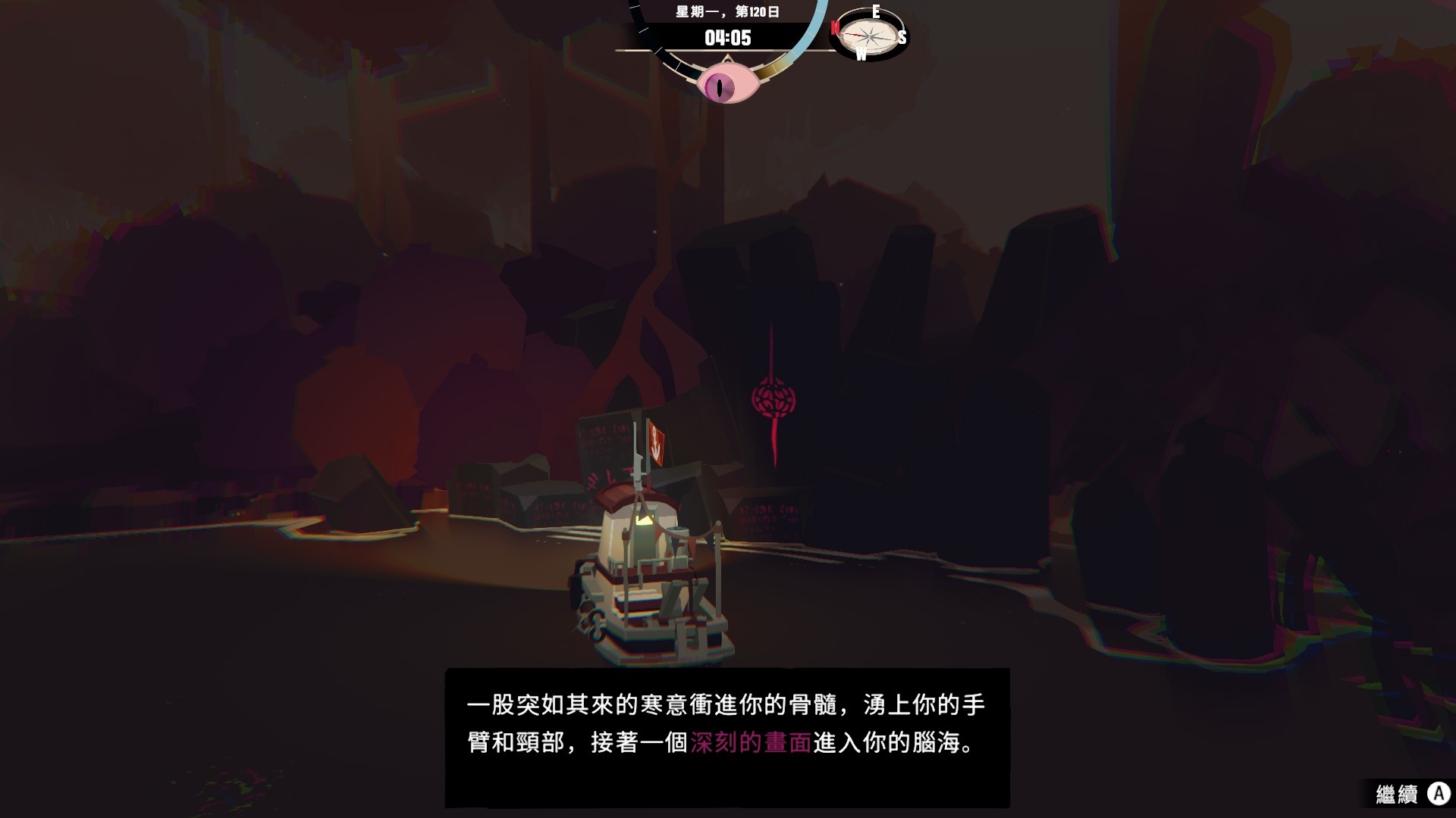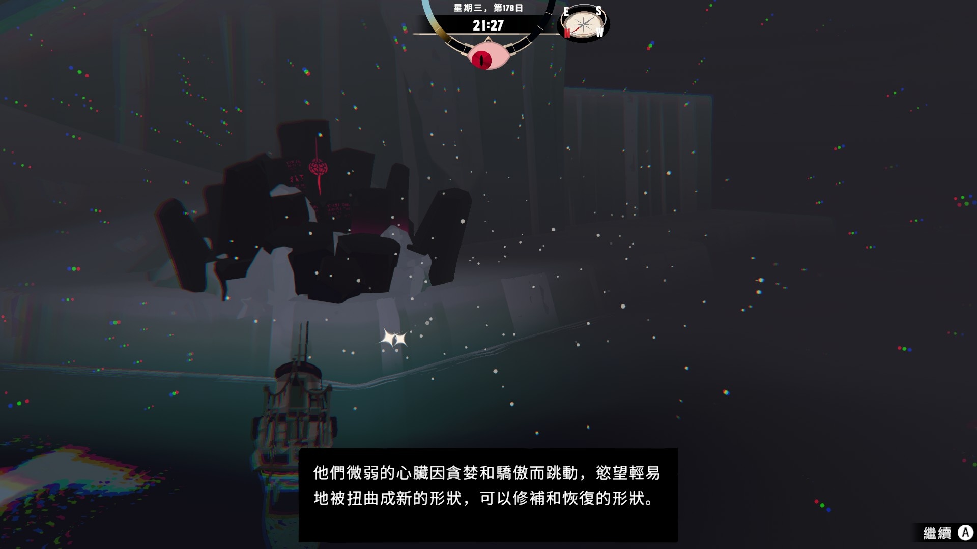 這遊戲應該是有理智系統的,熬夜、夜間航海或遭遇某些異常事件時,介面上方的圖標會冒出眼睛的圖案,這在這種狀態下,異常事件的觸發率似乎會有所提高。只是目前我玩起來,好像就算故意把理智搞低,也只是增加異常事件的觸發率,不會讓主角精神崩潰然後Game over的樣子,目前也沒遇到任何Jamp Scare的場面,非常的溫柔(