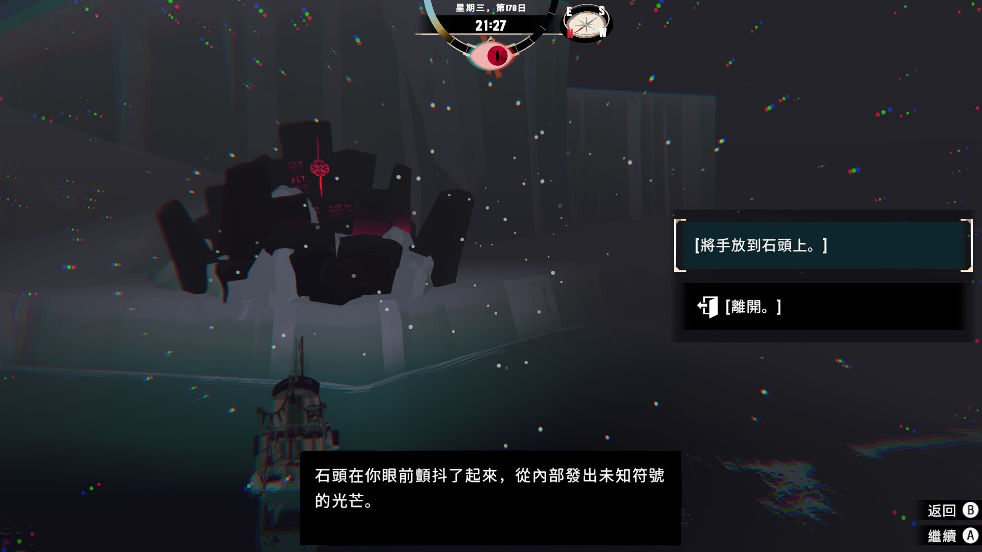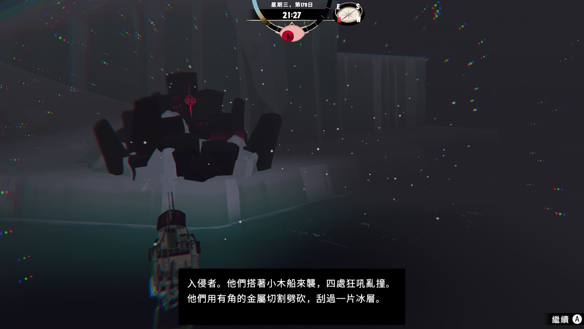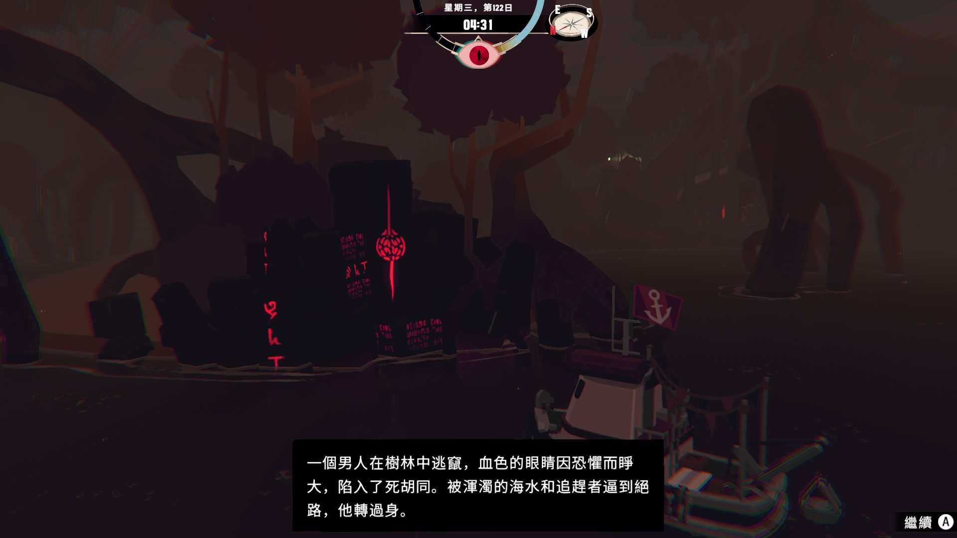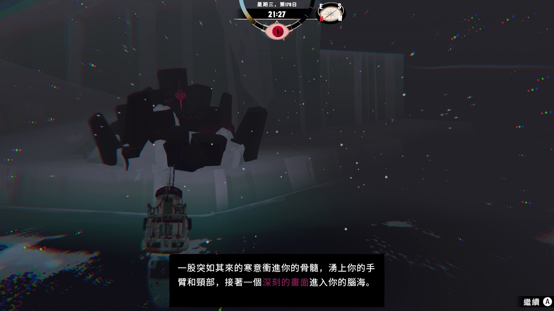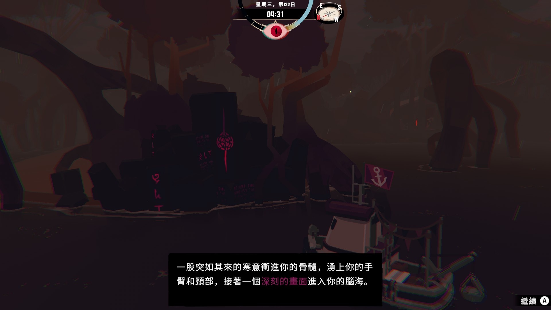 如果完全無視它在夜晚的種種詭異怪象,遊戲的進度應該可以非常快,不過我現在是照劇情小心翼翼地玩,天黑基本都會乖乖回家ww