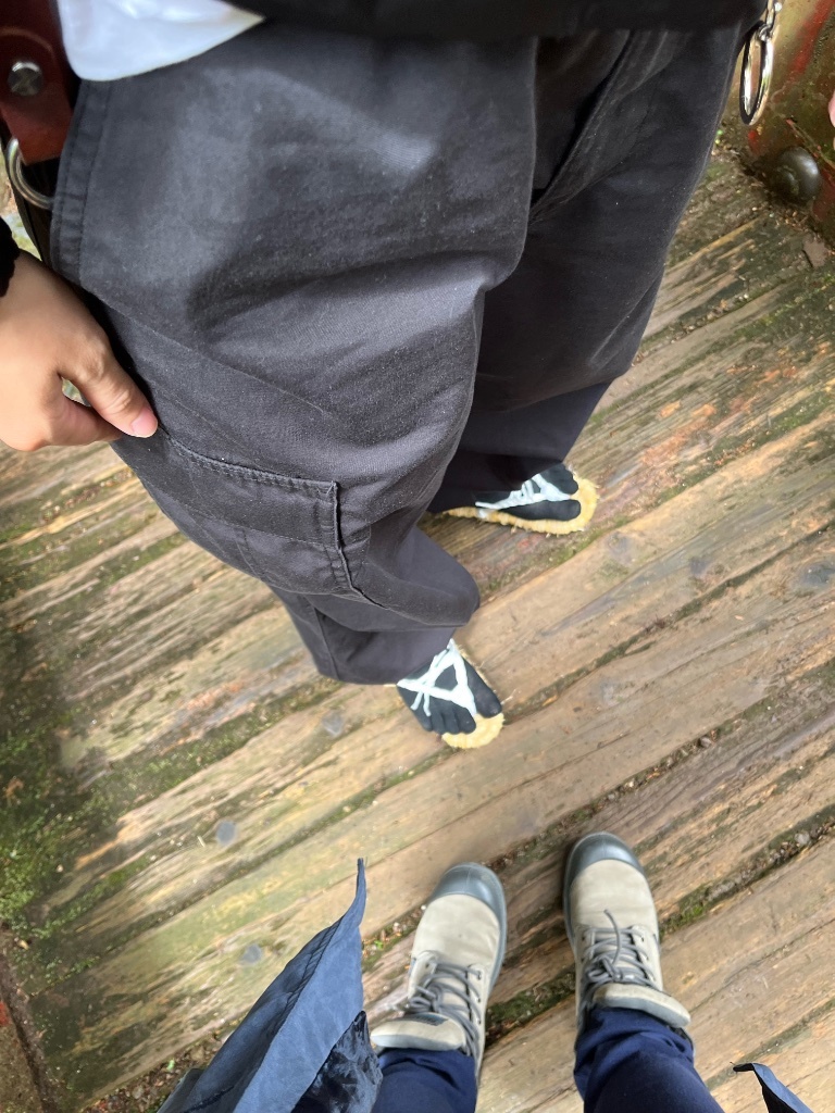 他沒帶登山鞋所以穿了平常穿的burberry