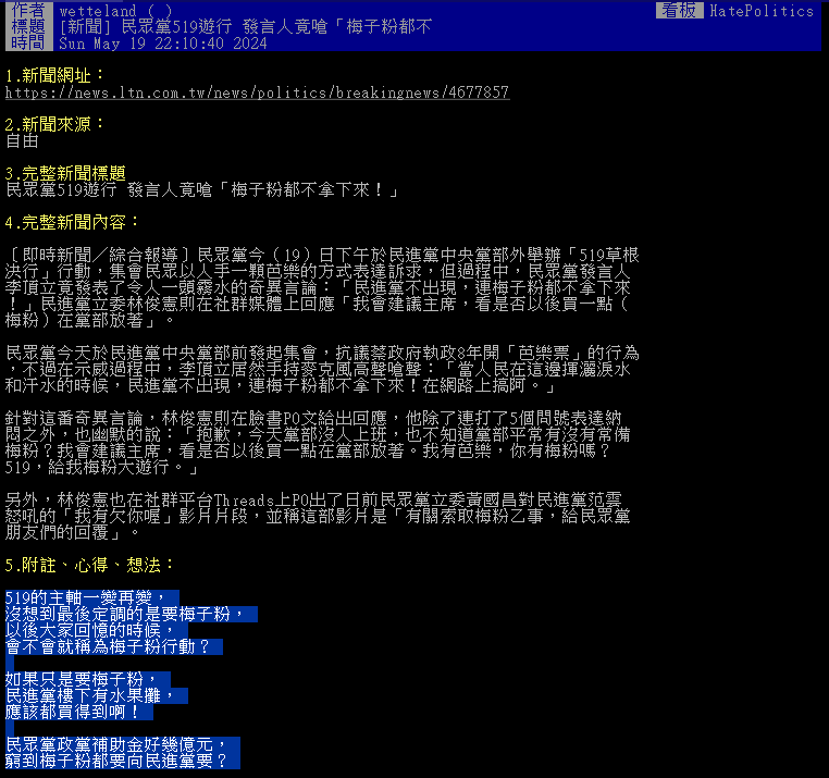 批踢踢實業坊 - HatePolitics