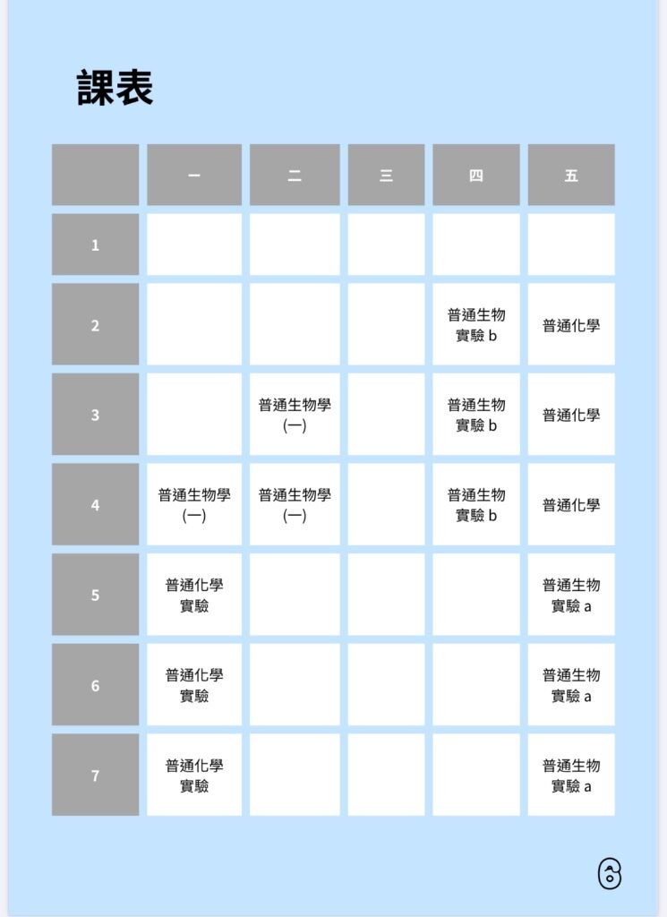 (附上我們新生包裡面的課表)