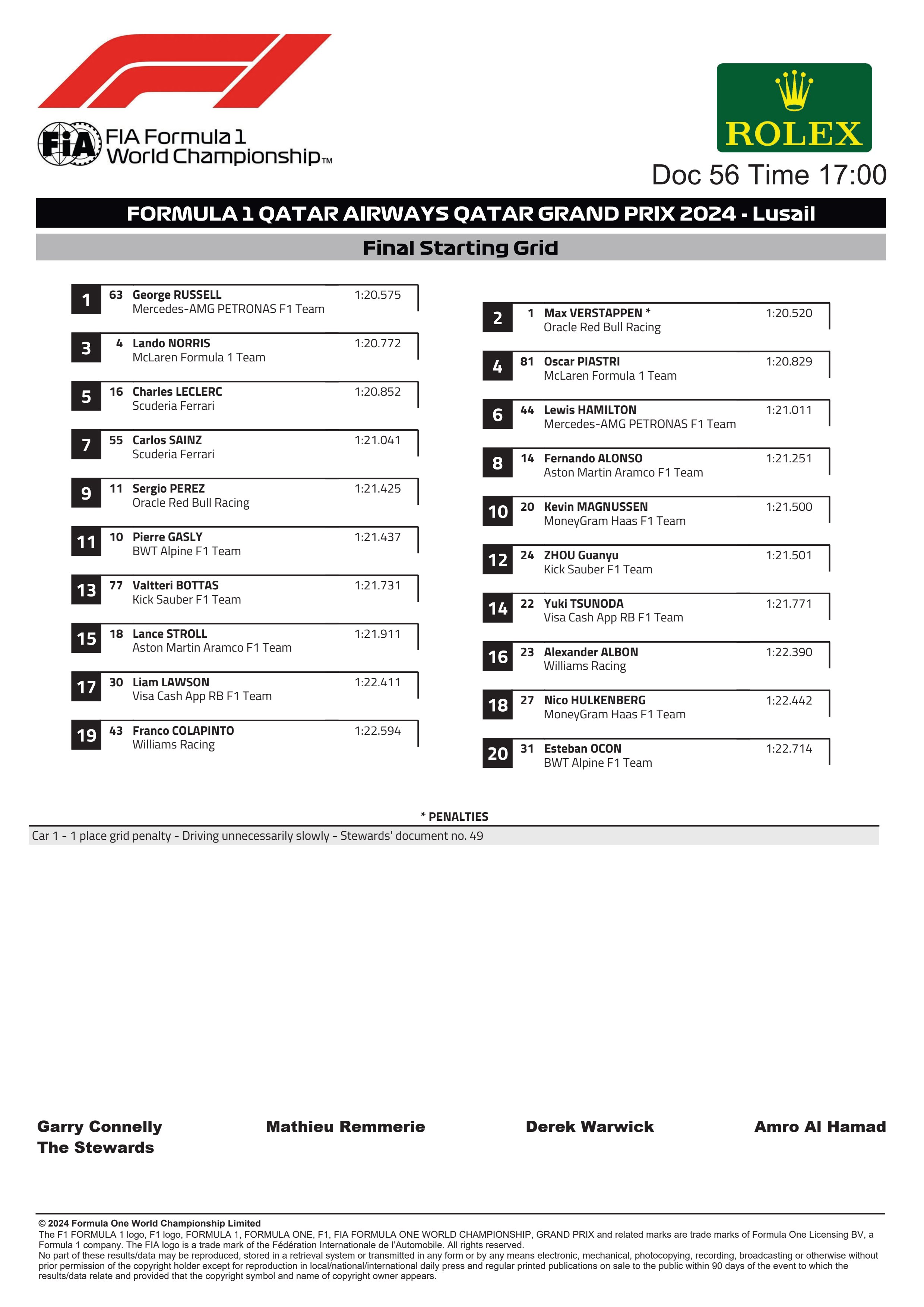 FINAL STARTING GRID