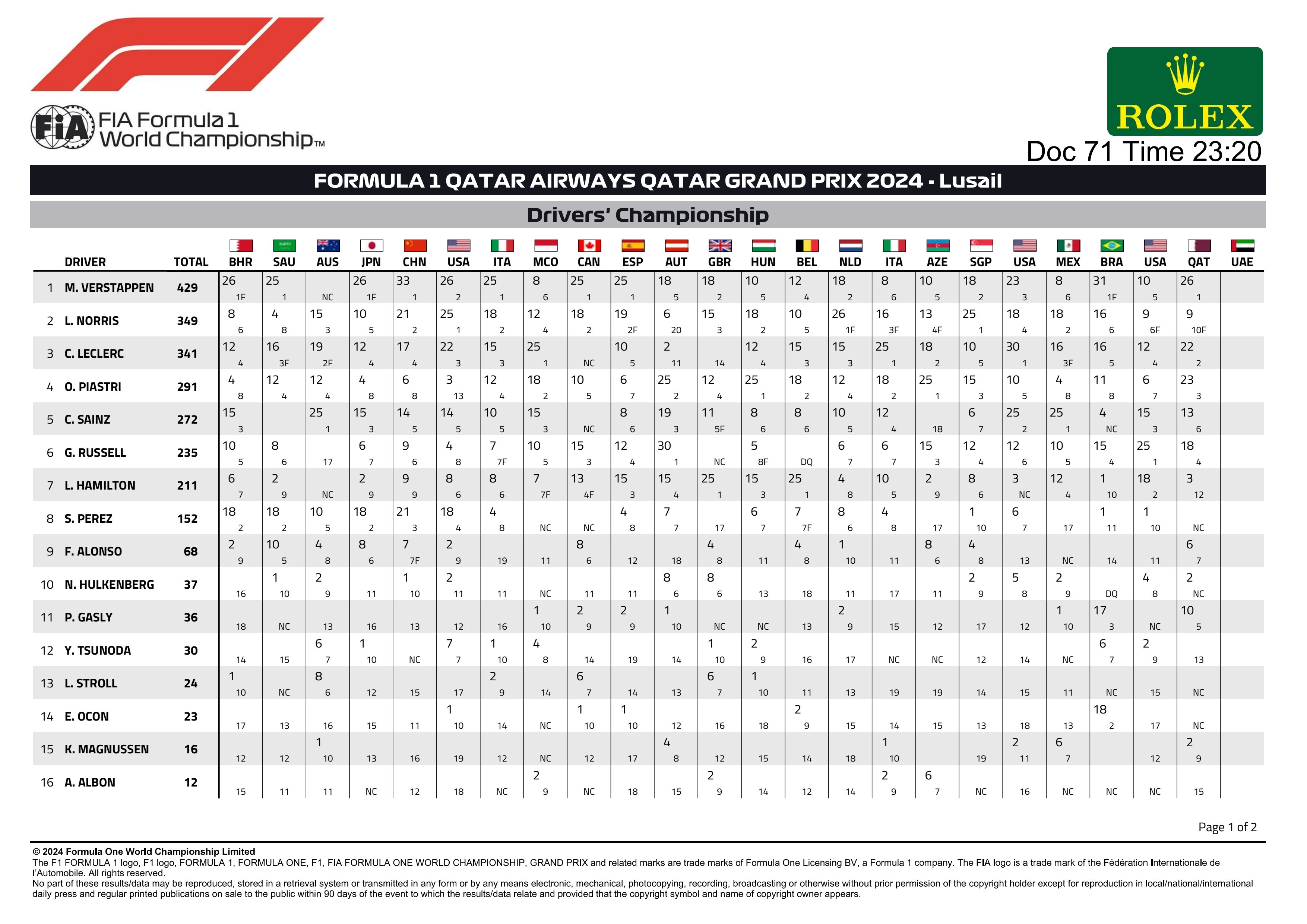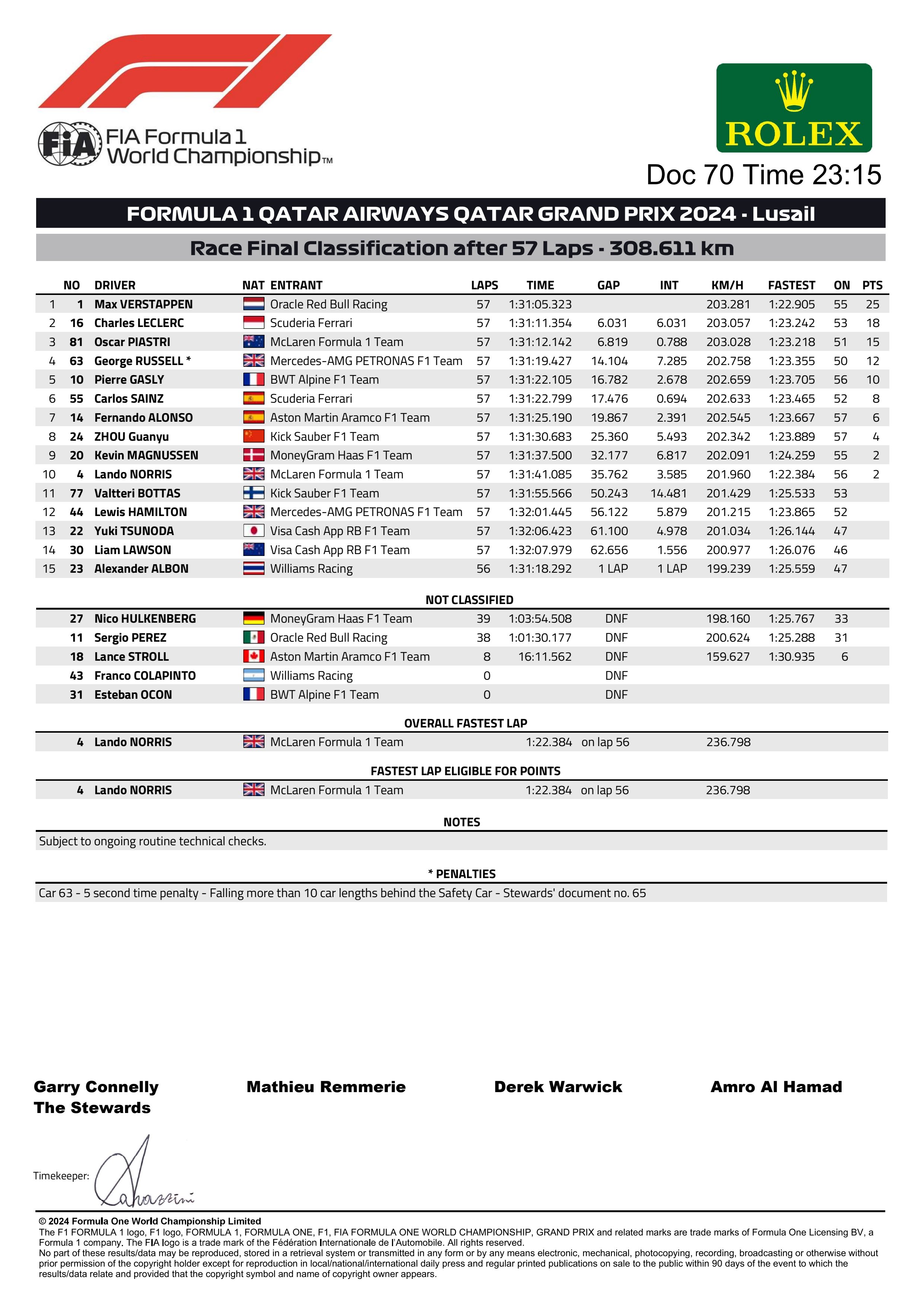 FINAL RACE CLASSIFICATION