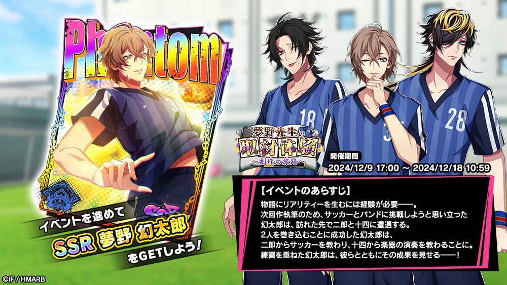 幻太郎為了取材,跟二郎體驗踢球、又跟十四體驗搞樂團。