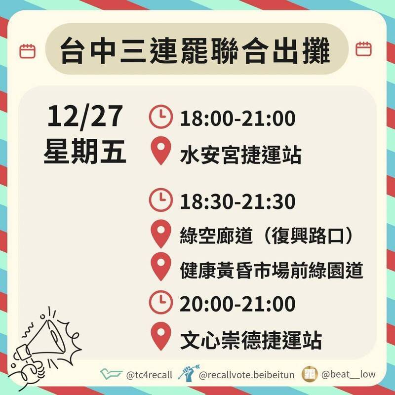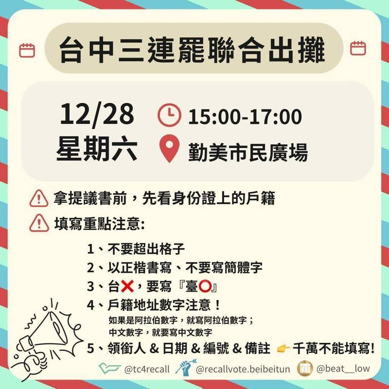 台中3連罷聯合出攤 明後天加場路段及時間曝 - 政治 - 自由時報電子報