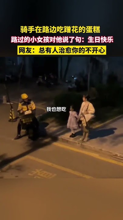 骑手在路边吃蹭花的蛋糕,路过的小女孩对他说了句:生日快乐…网友:总有人治愈你的不开心 #生活 #暖心