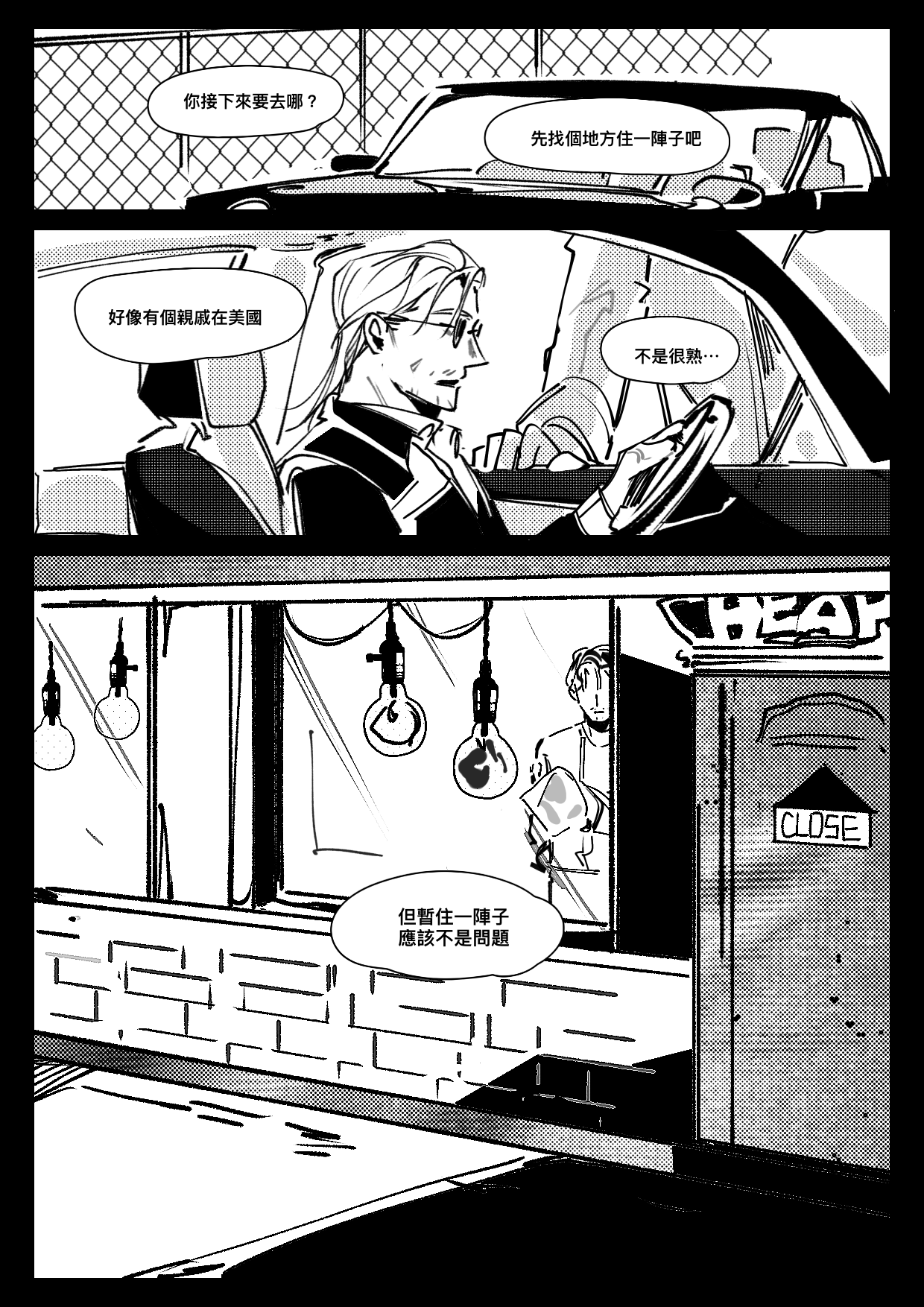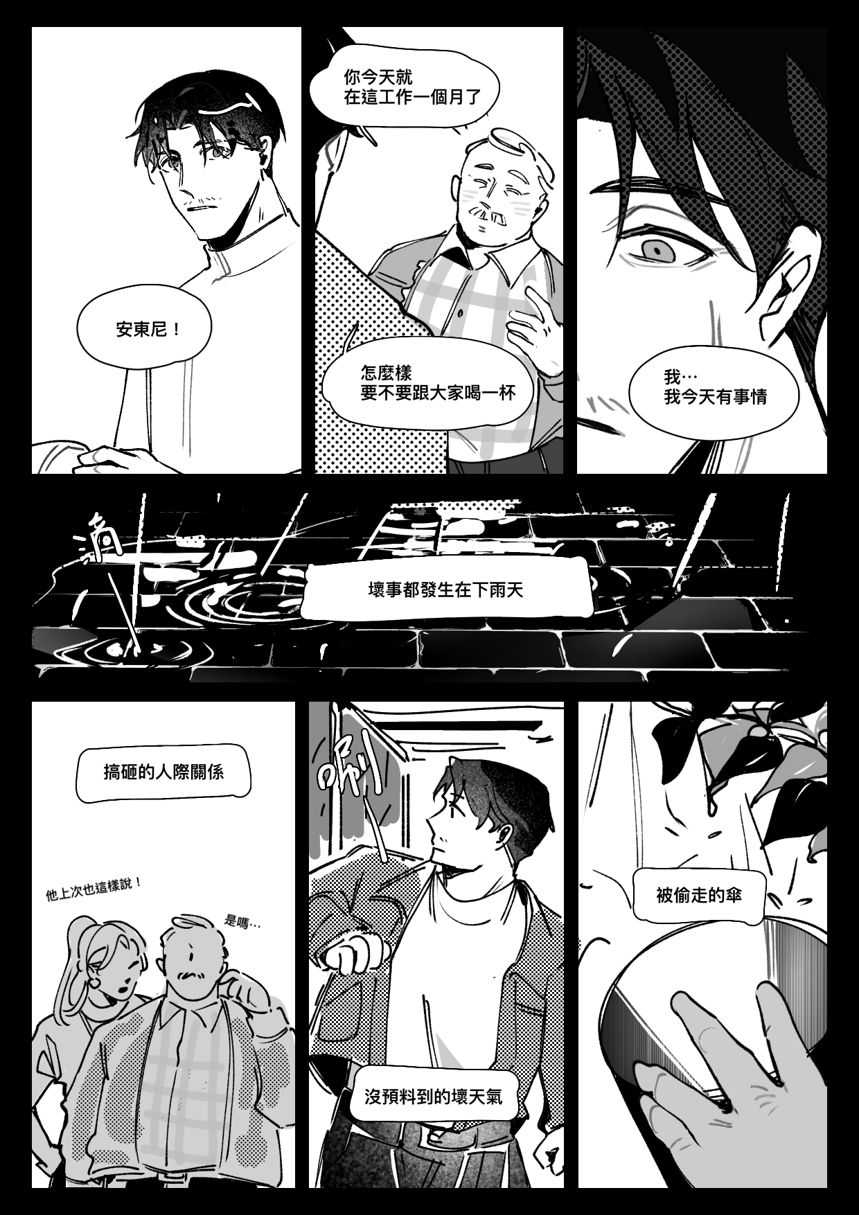 好喜歡壞事都發生在雨天的堆疊還有最後停在鏡面和爺爺的葬禮!有種風雨欲來的感覺⋯⋯太喜歡這個黑白分界了就像懸疑片一樣!叔姪是因為什麼有交集的呢雖然不是很熟但似乎有段姻緣⋯在爺爺的葬禮上發生了什麼嗎!真是太好奇了⋯⋯