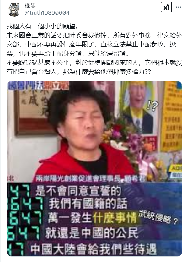敵對國家的人民,根本就不該成為台灣人。