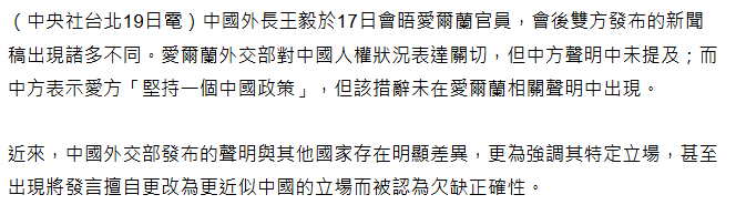 王毅訪愛爾蘭 中愛雙方聲明內容存差異 | 兩岸 | 中央社 CNA