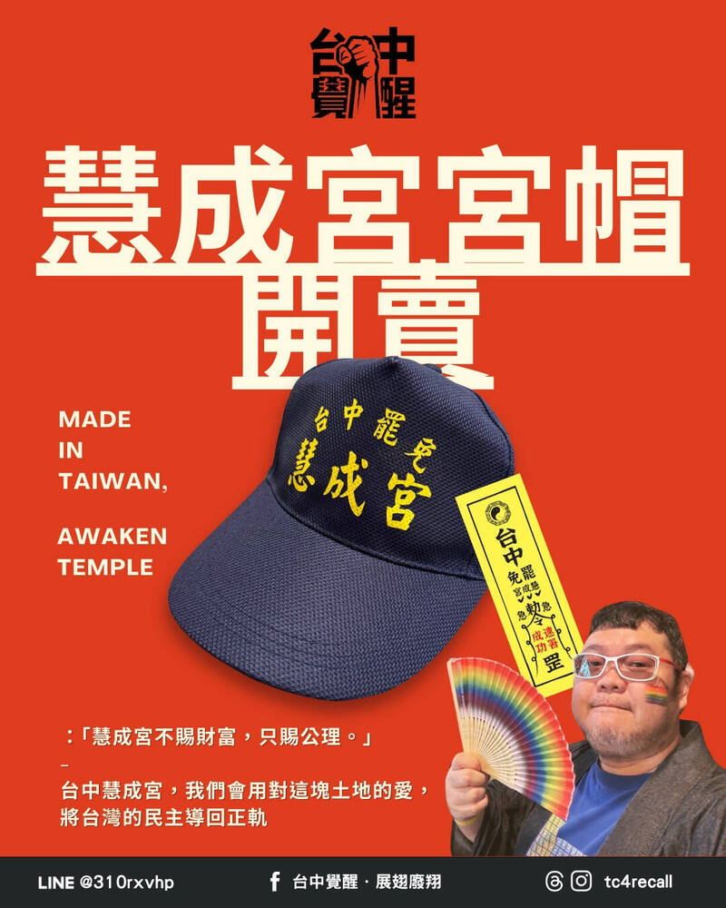 台中罷團「慧成宮」冠軍帽開賣 定價377元原因曝光 - 臺中市 - 自由時報電子報