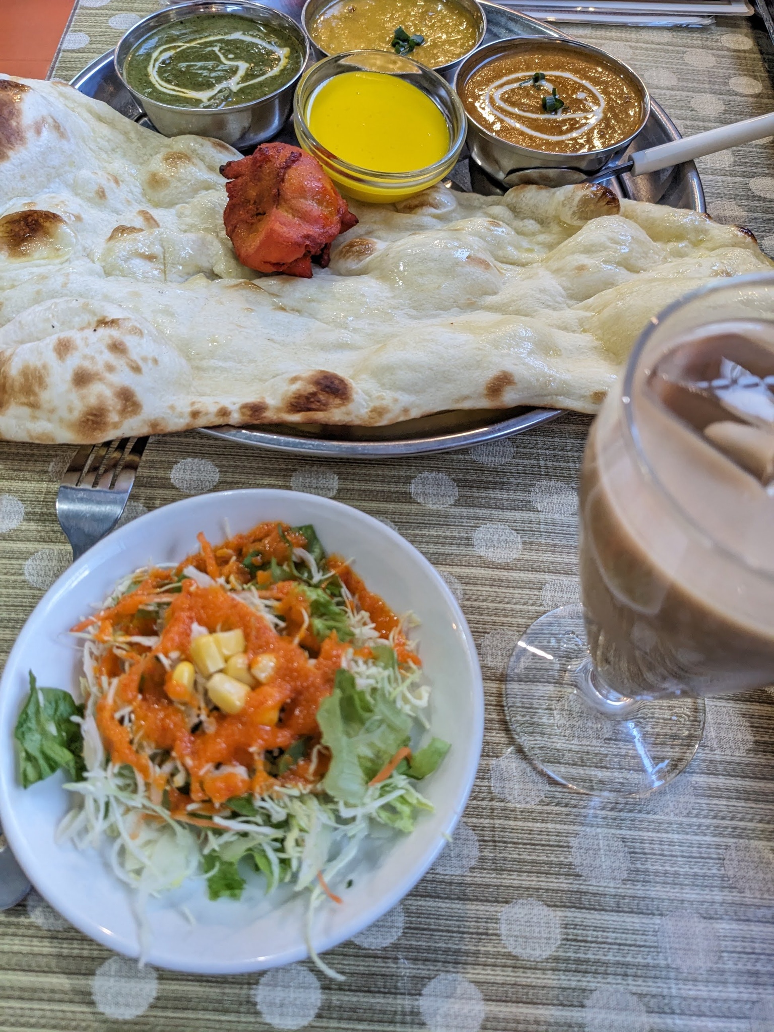 太好吃了連刷兩天,這次鼓起勇氣點了尼泊爾套餐(把米飯換成烤餅),一堆看不懂的東西但都好好吃~~~(不過就是比較辣)
