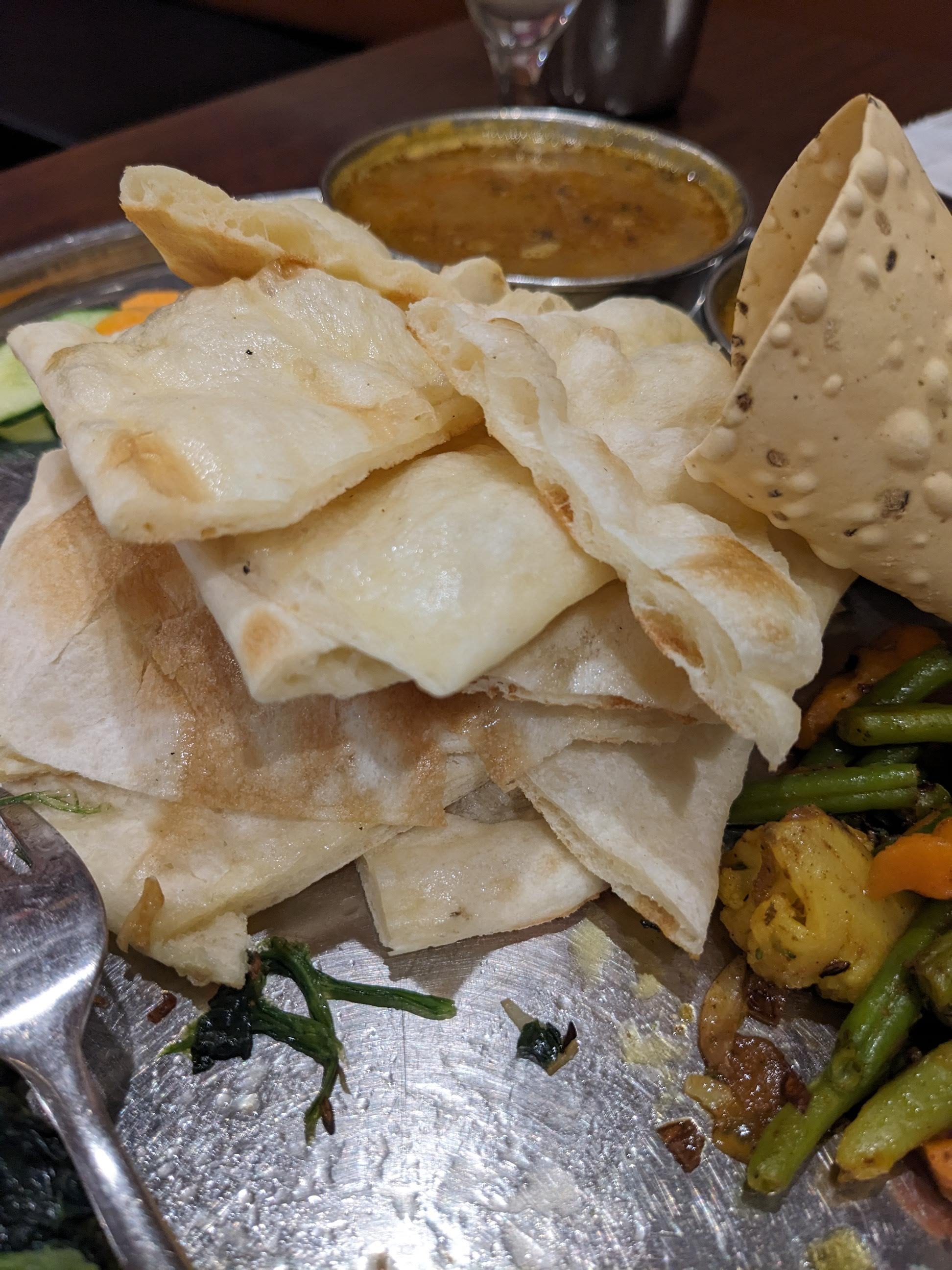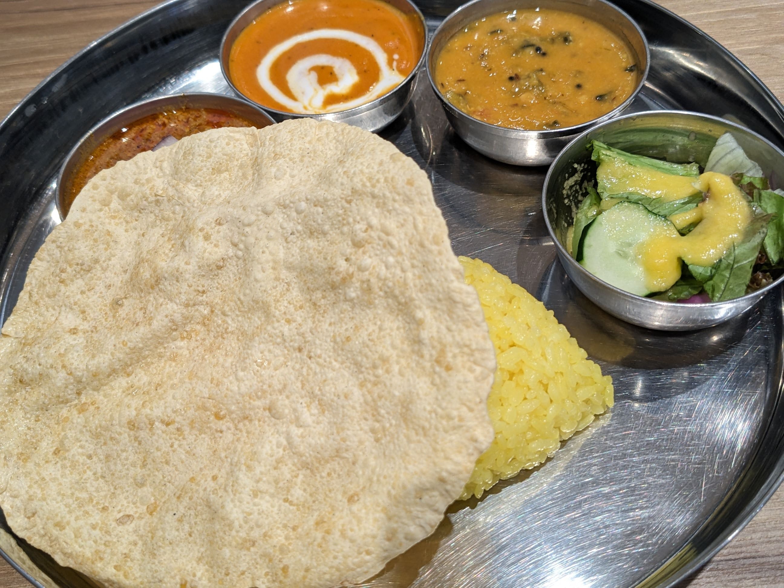 雖然說印度餐廳不容易踩雷,不過也是有派系(菜系?)的分別,這間店在比較高級的商場裡面,好像是南印?風味,沒有饢餅,只有米飯跟薄餅。不難吃,但就比較不符合我的期望