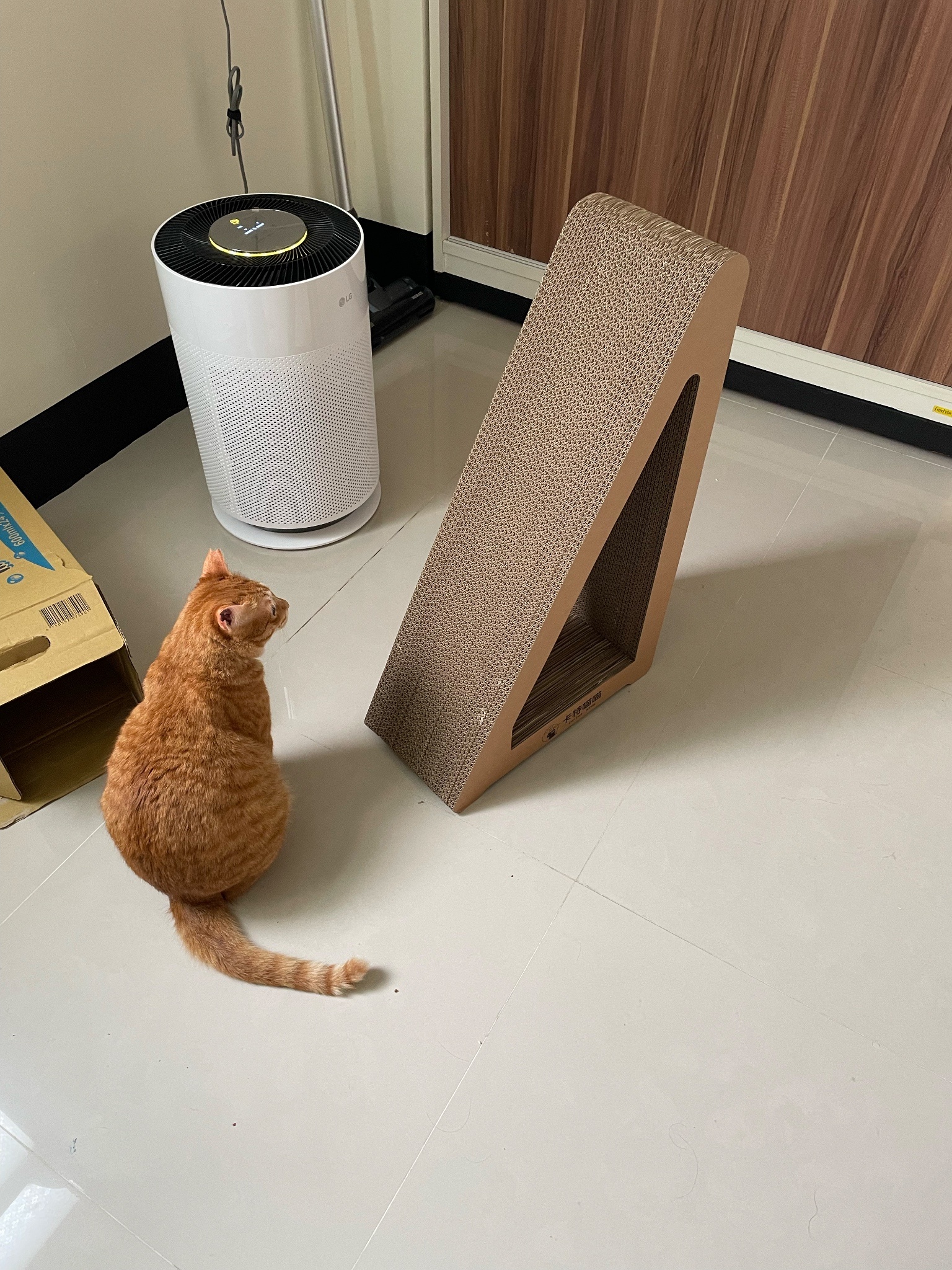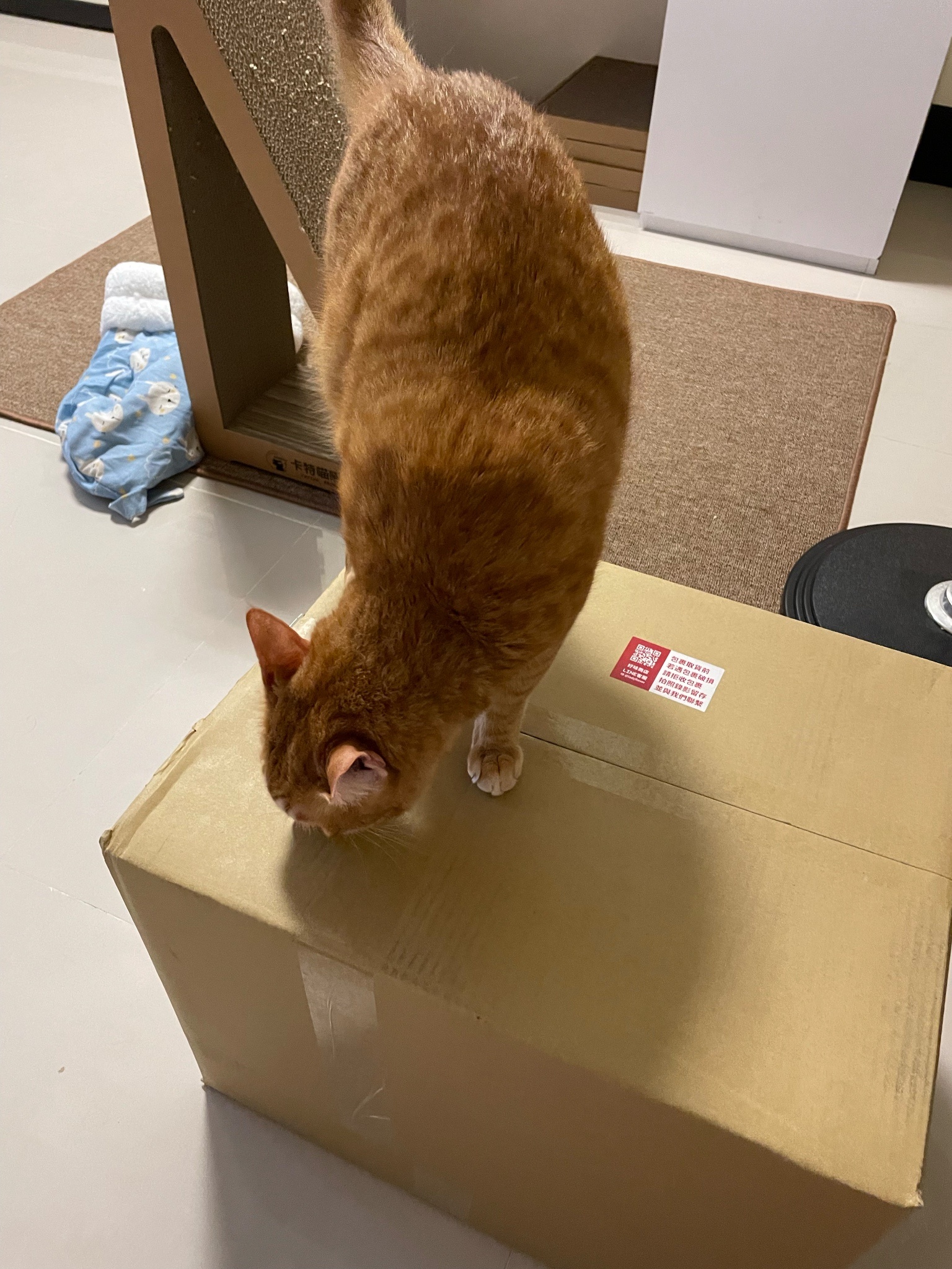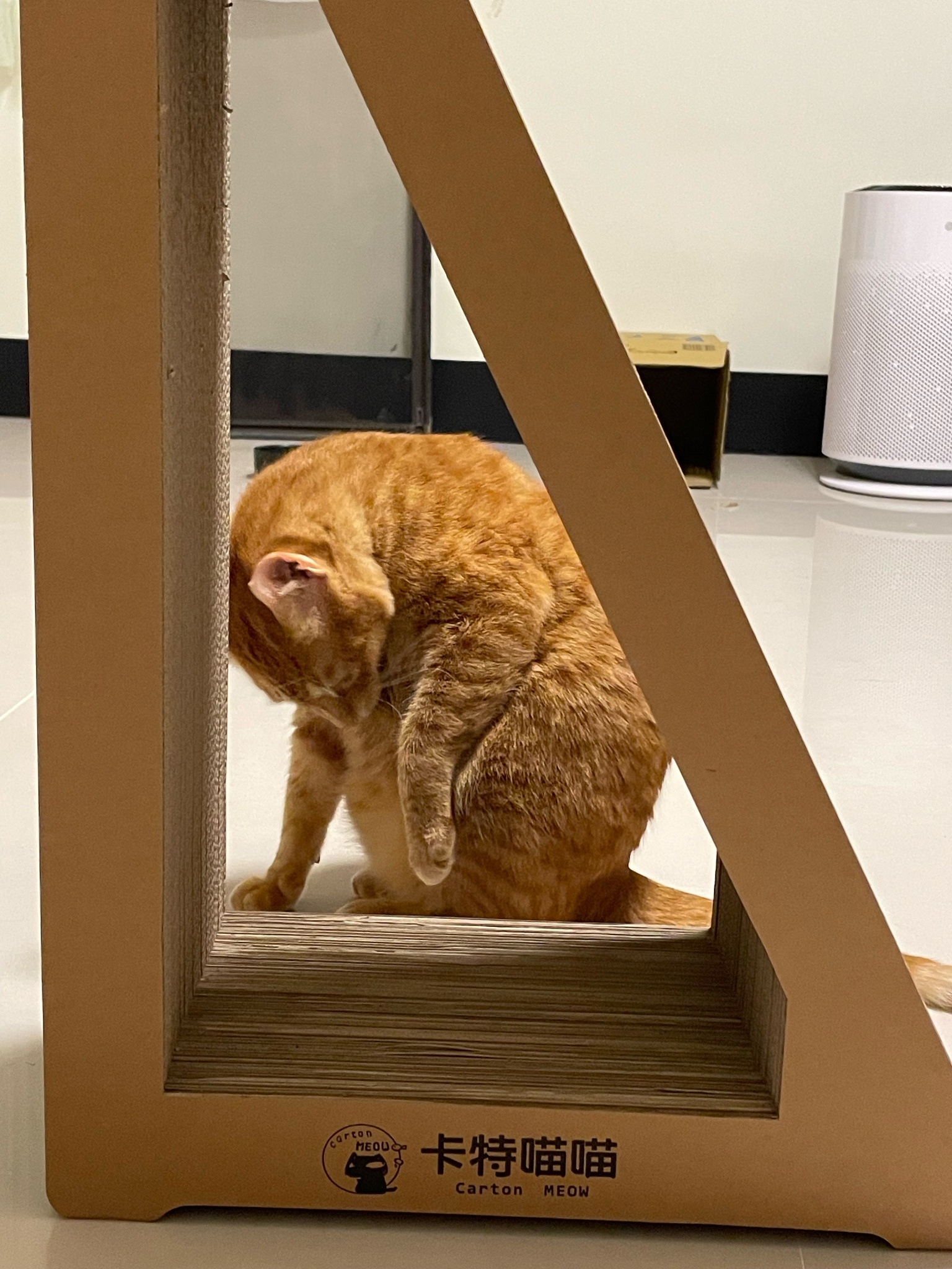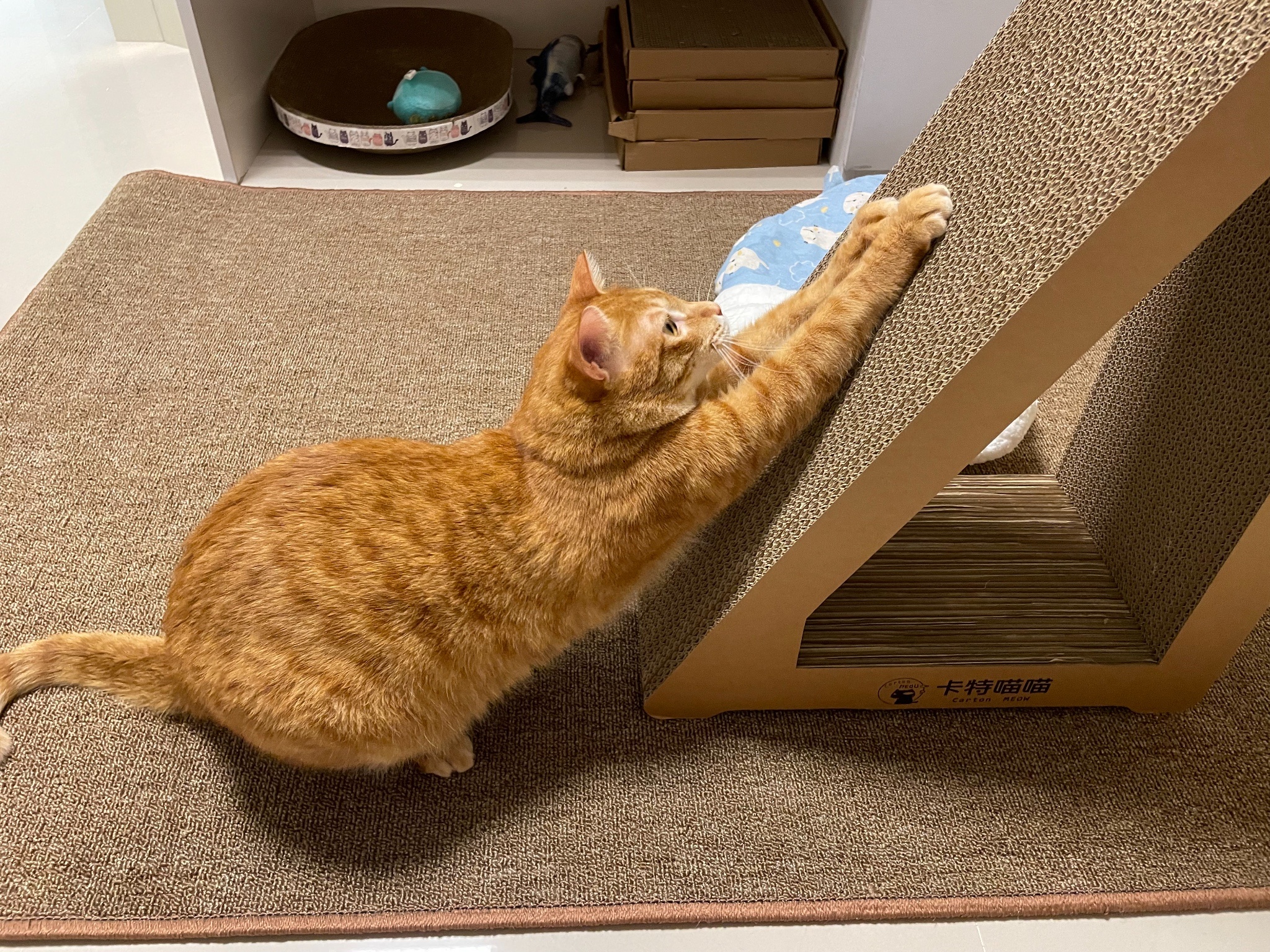 買了新的貓抓板給他玩但看超久才上手好笨好可愛