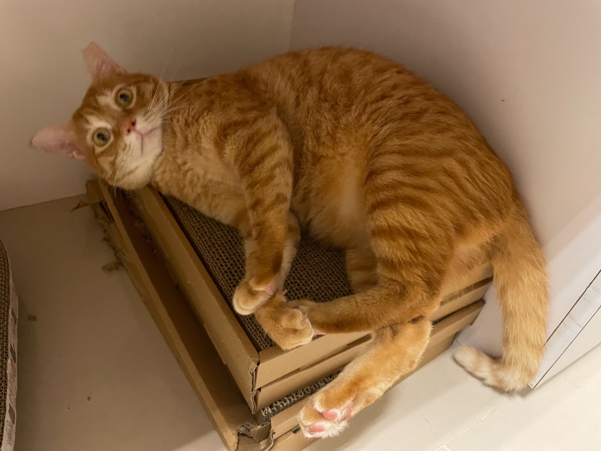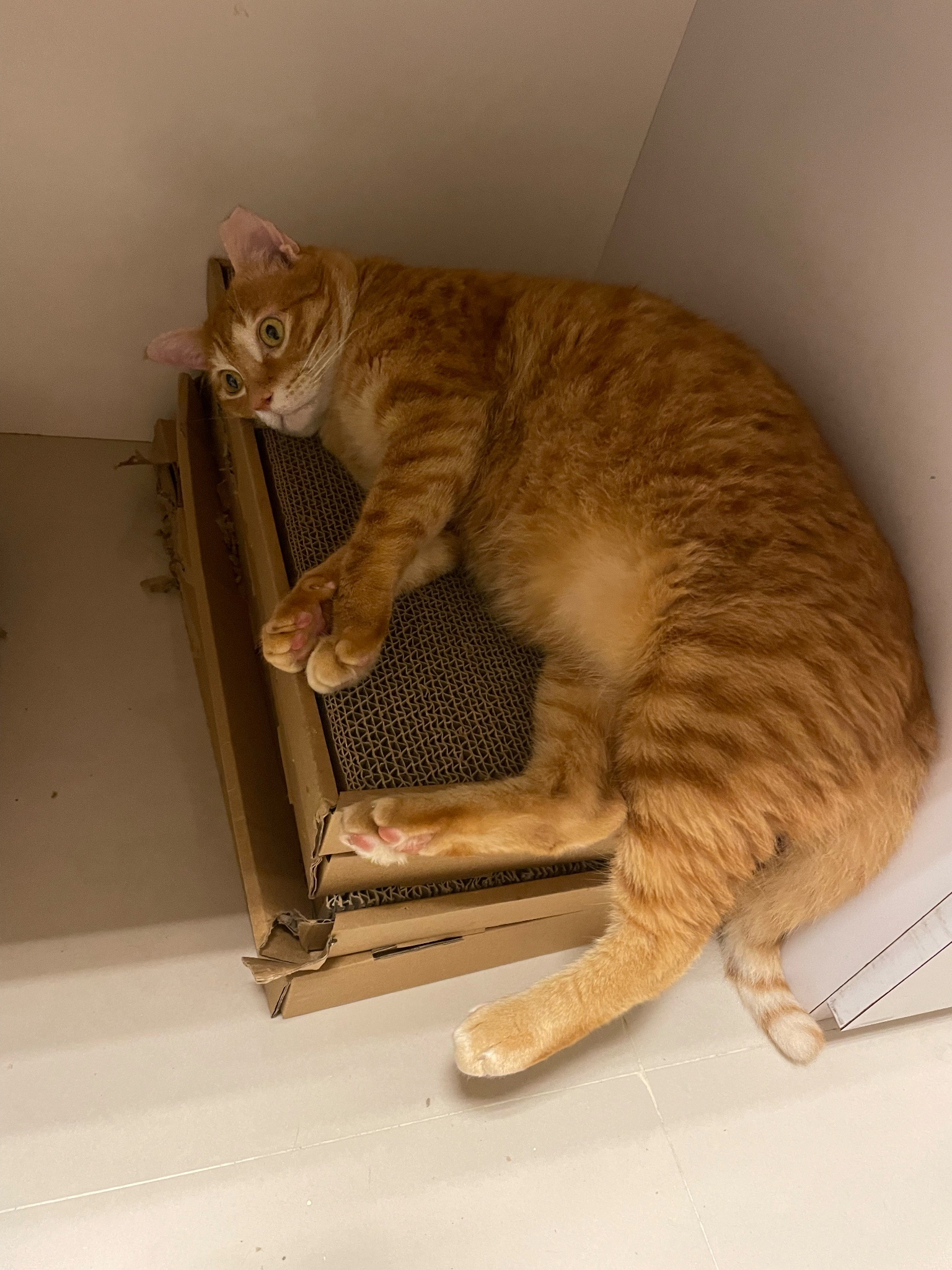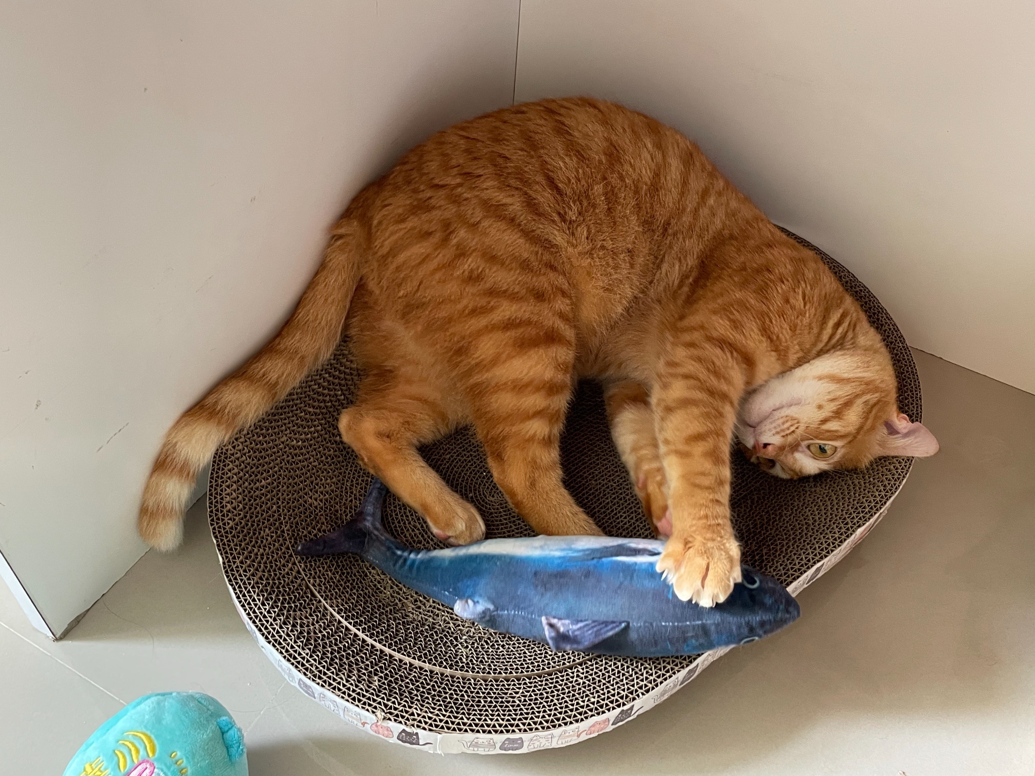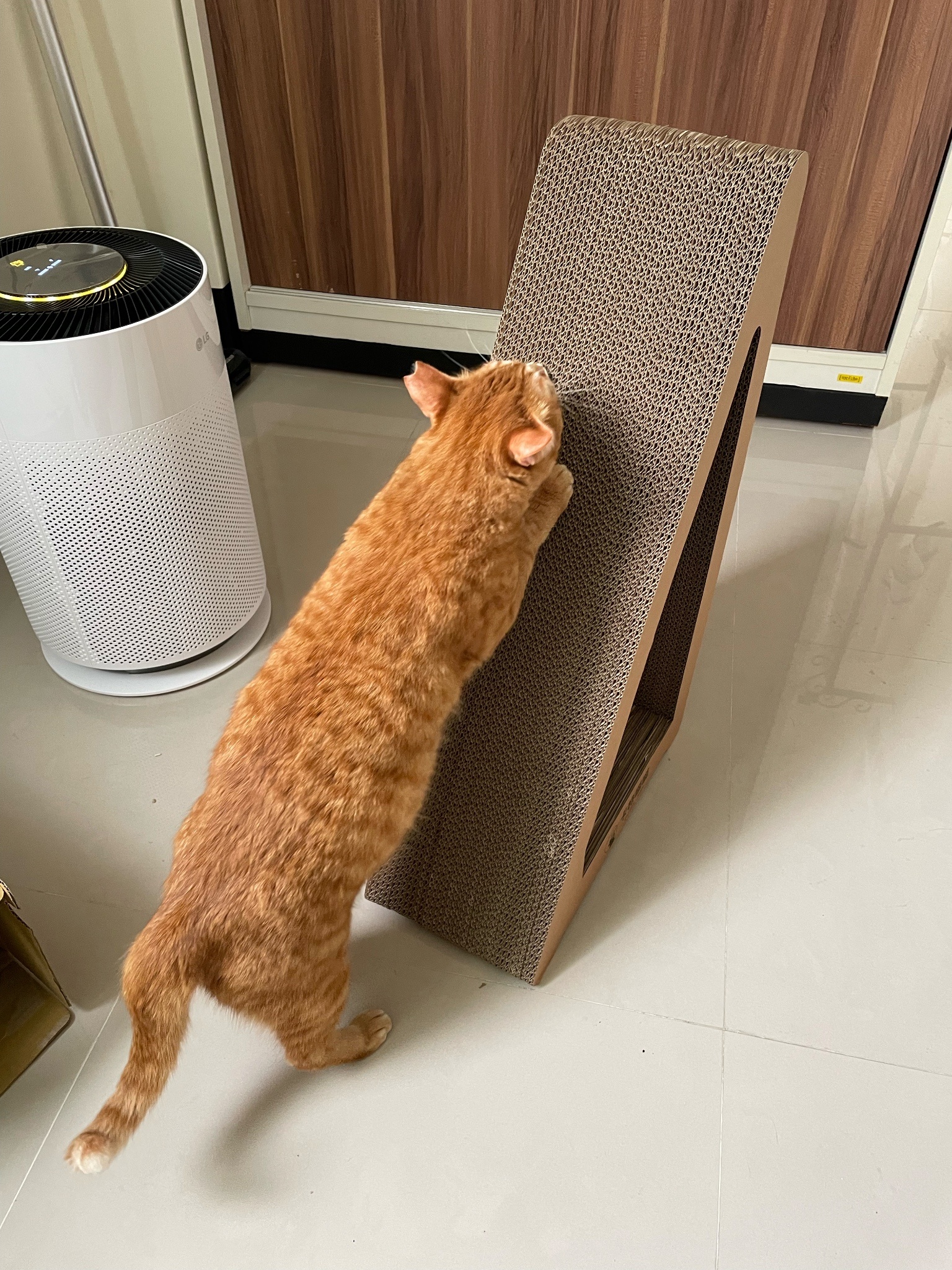 買了新的貓抓板給他玩但看超久才上手好笨好可愛