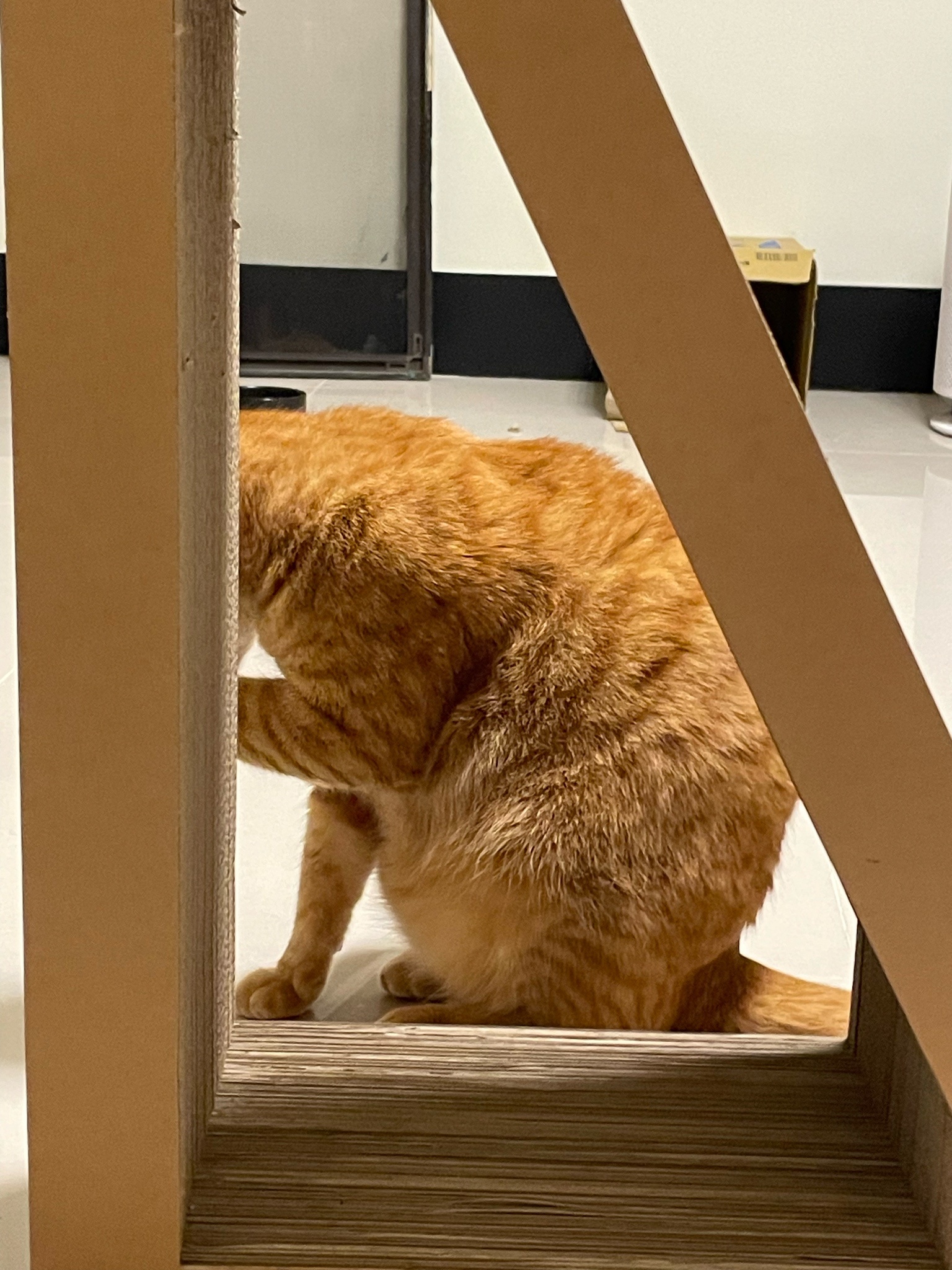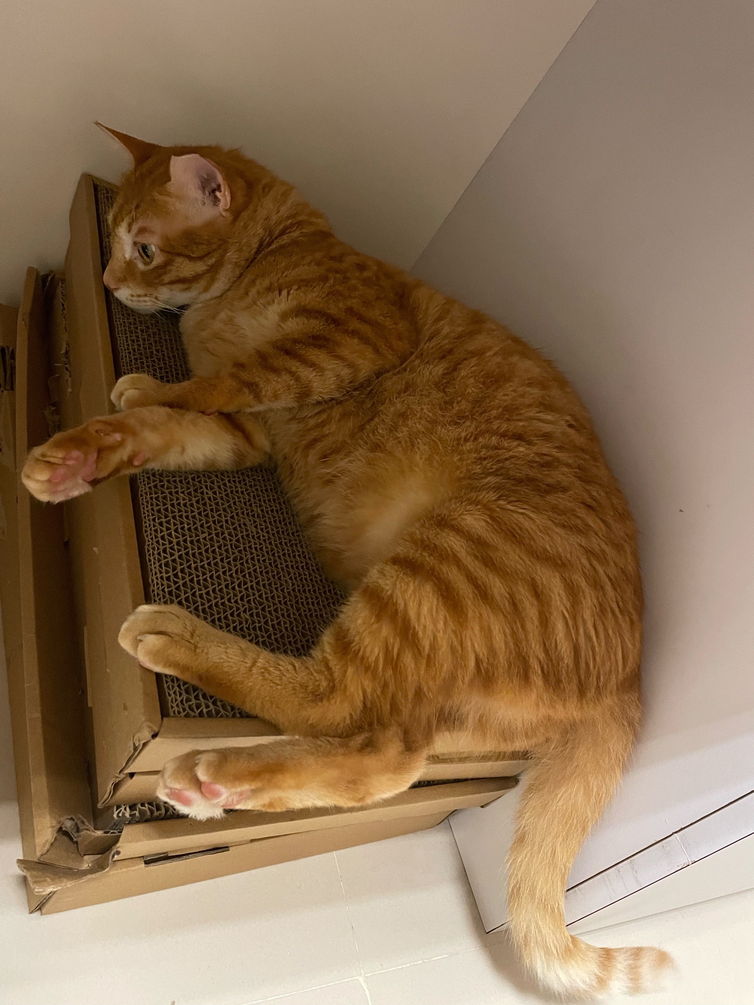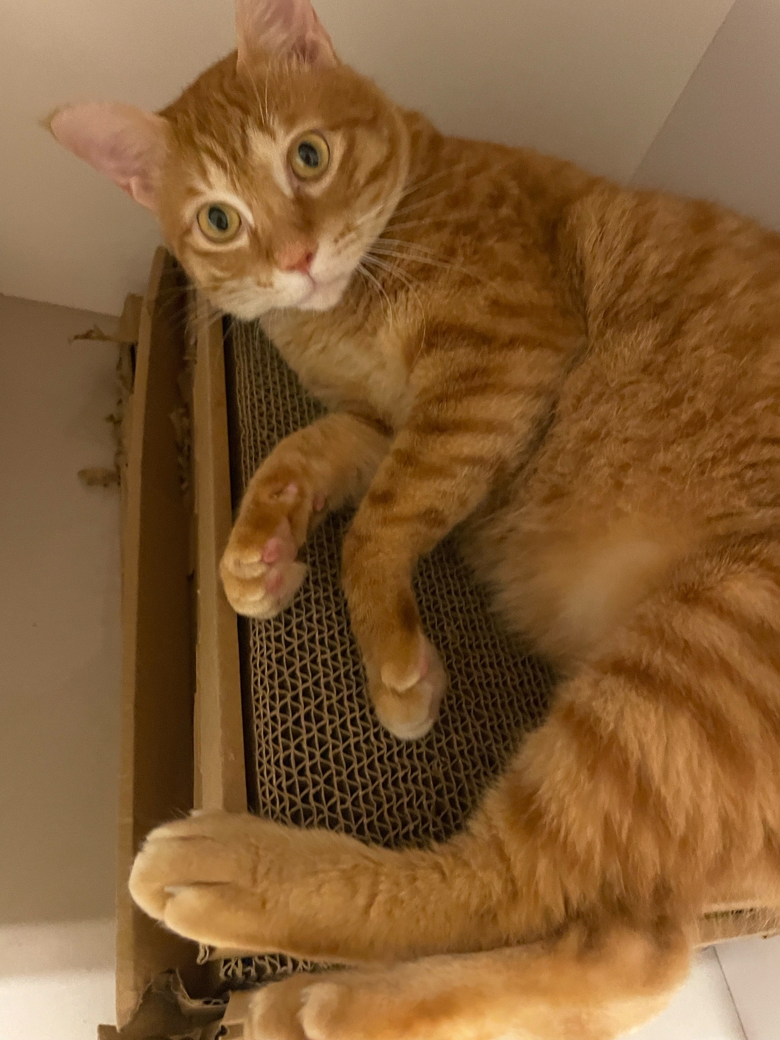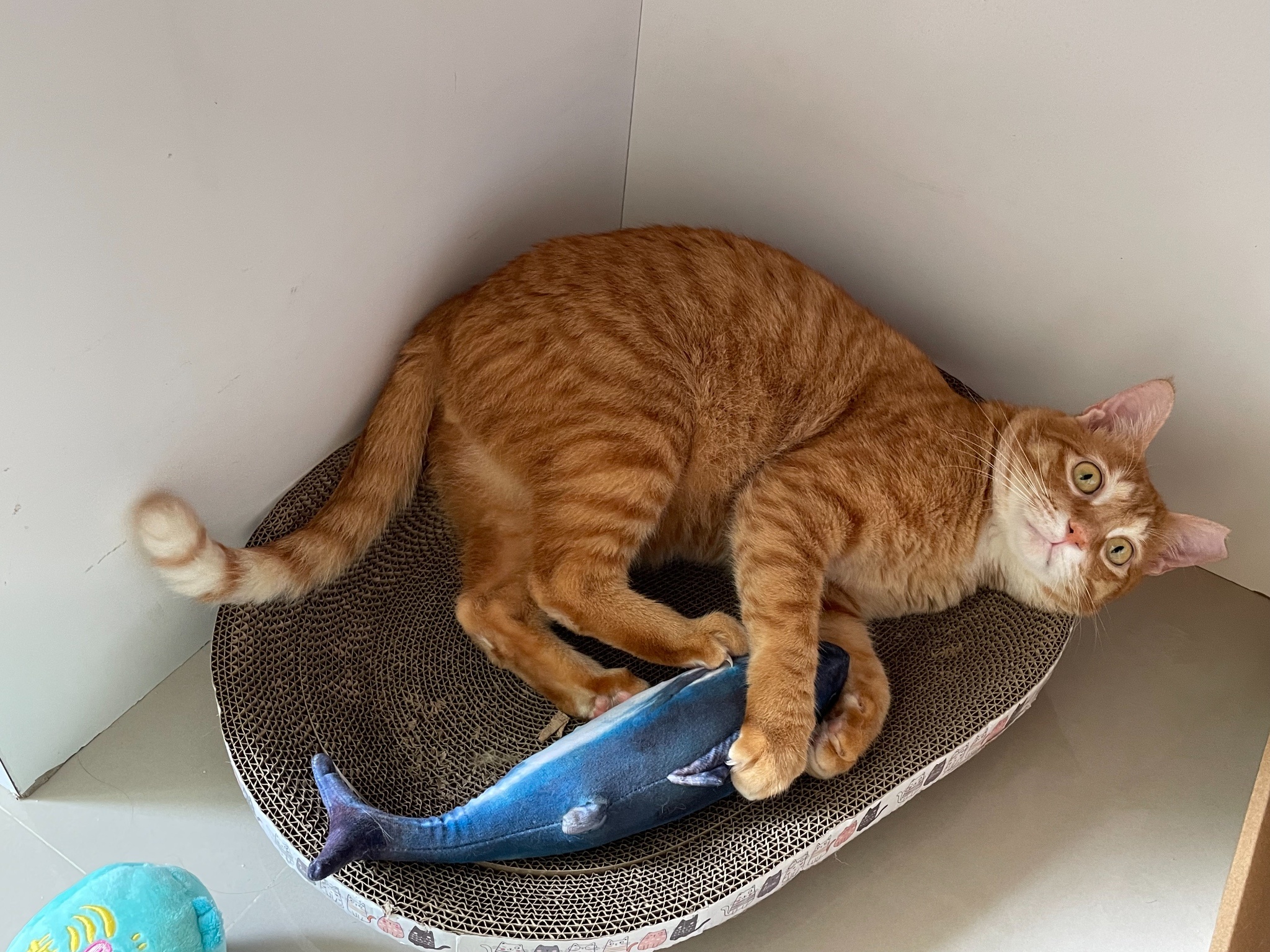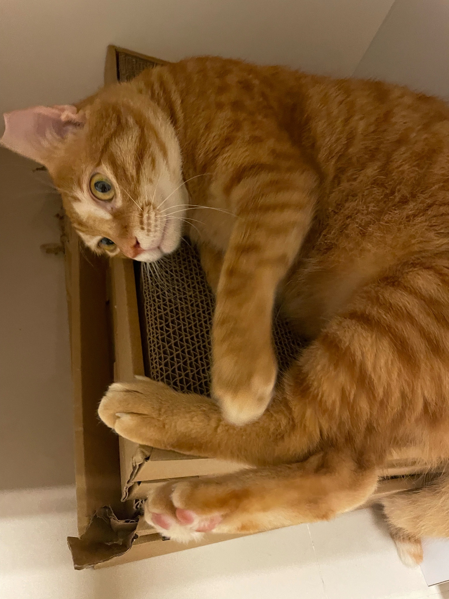 買了新的貓抓板給他玩但看超久才上手好笨好可愛