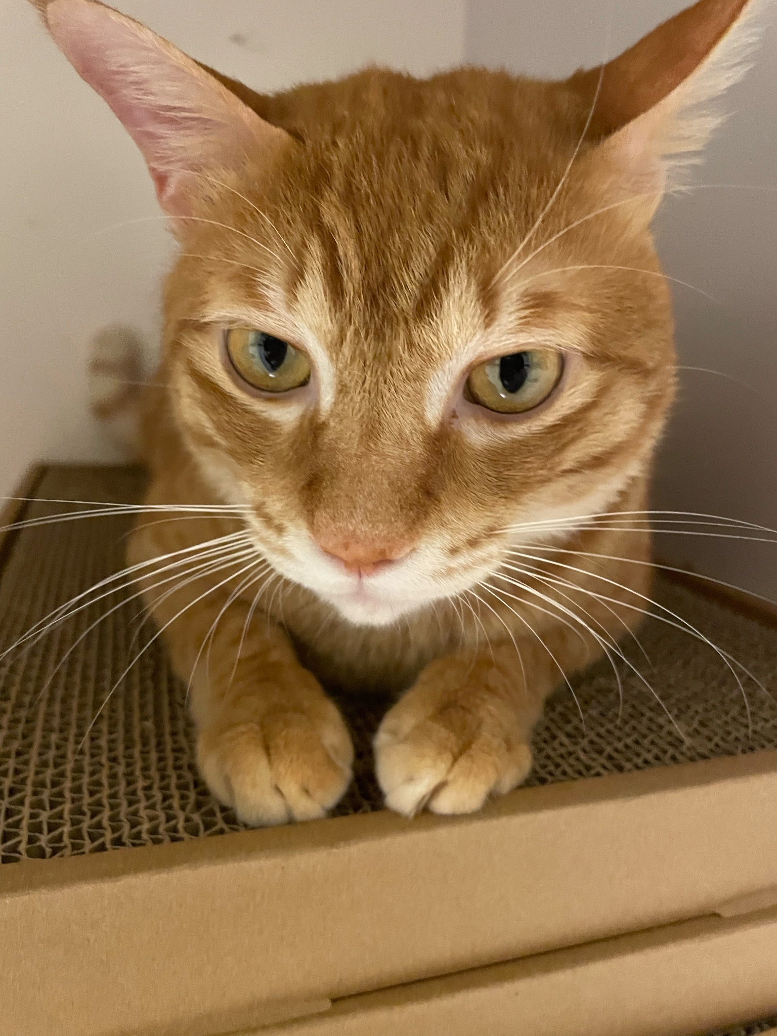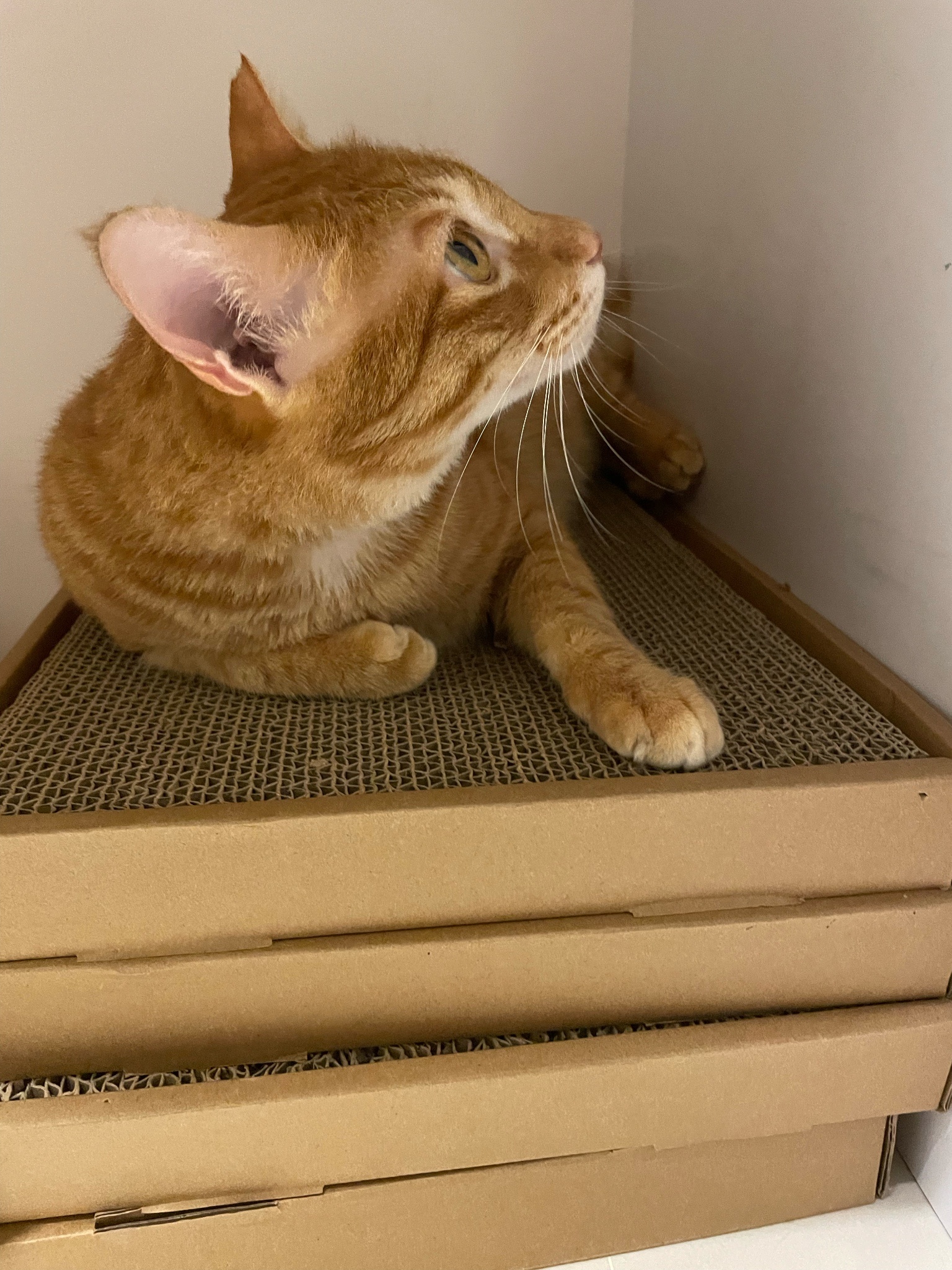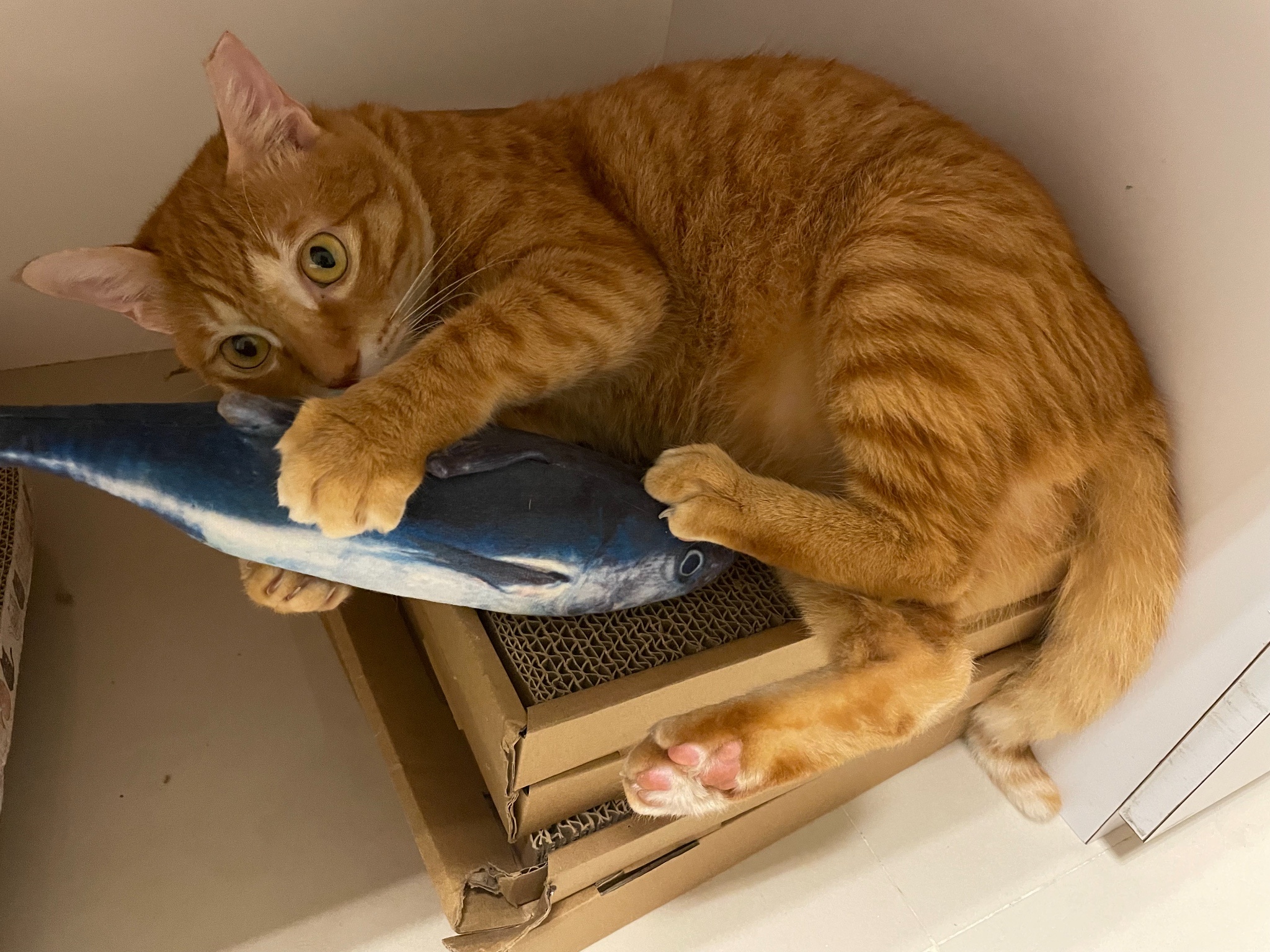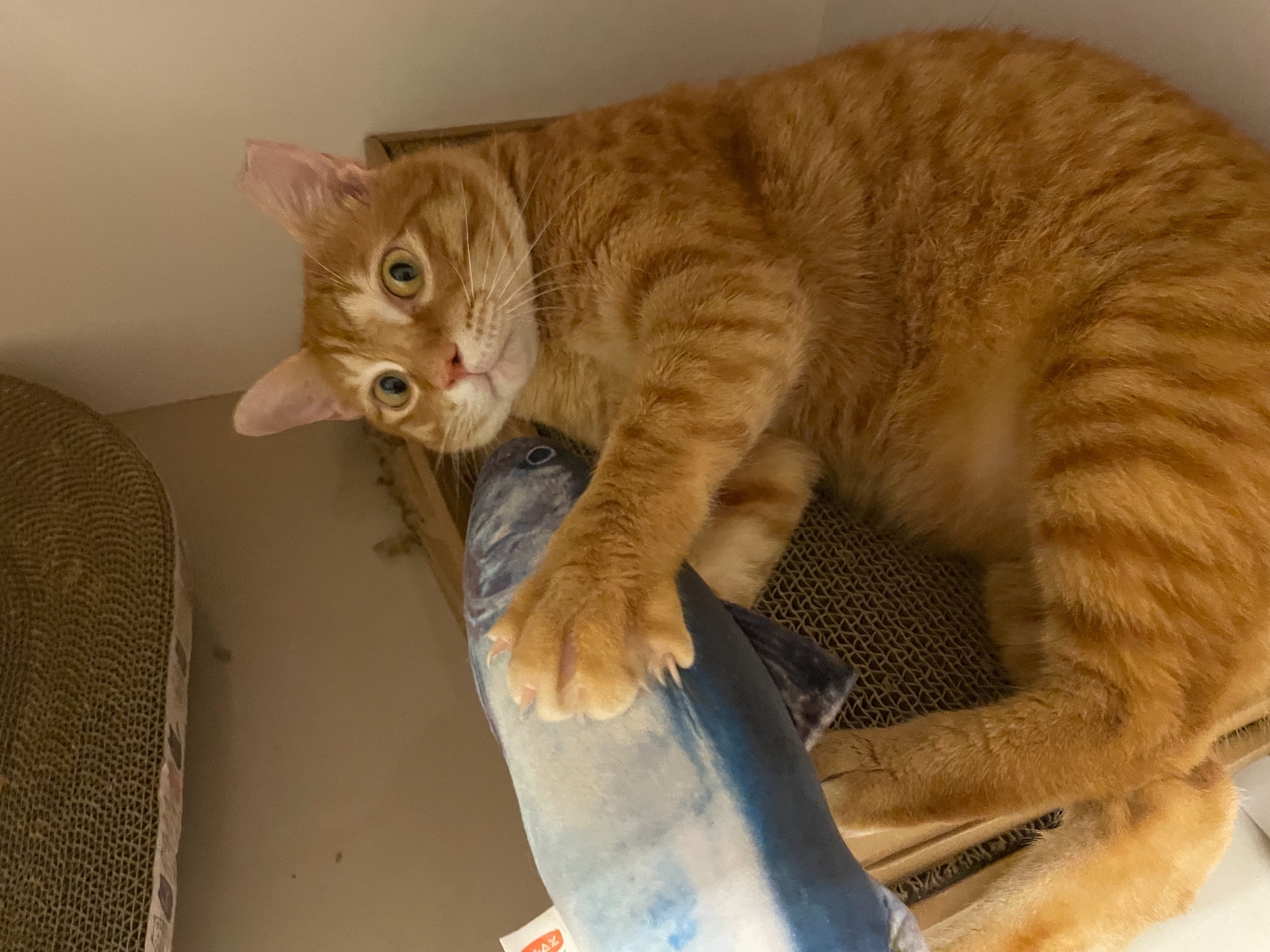 買了新的貓抓板給他玩但看超久才上手好笨好可愛