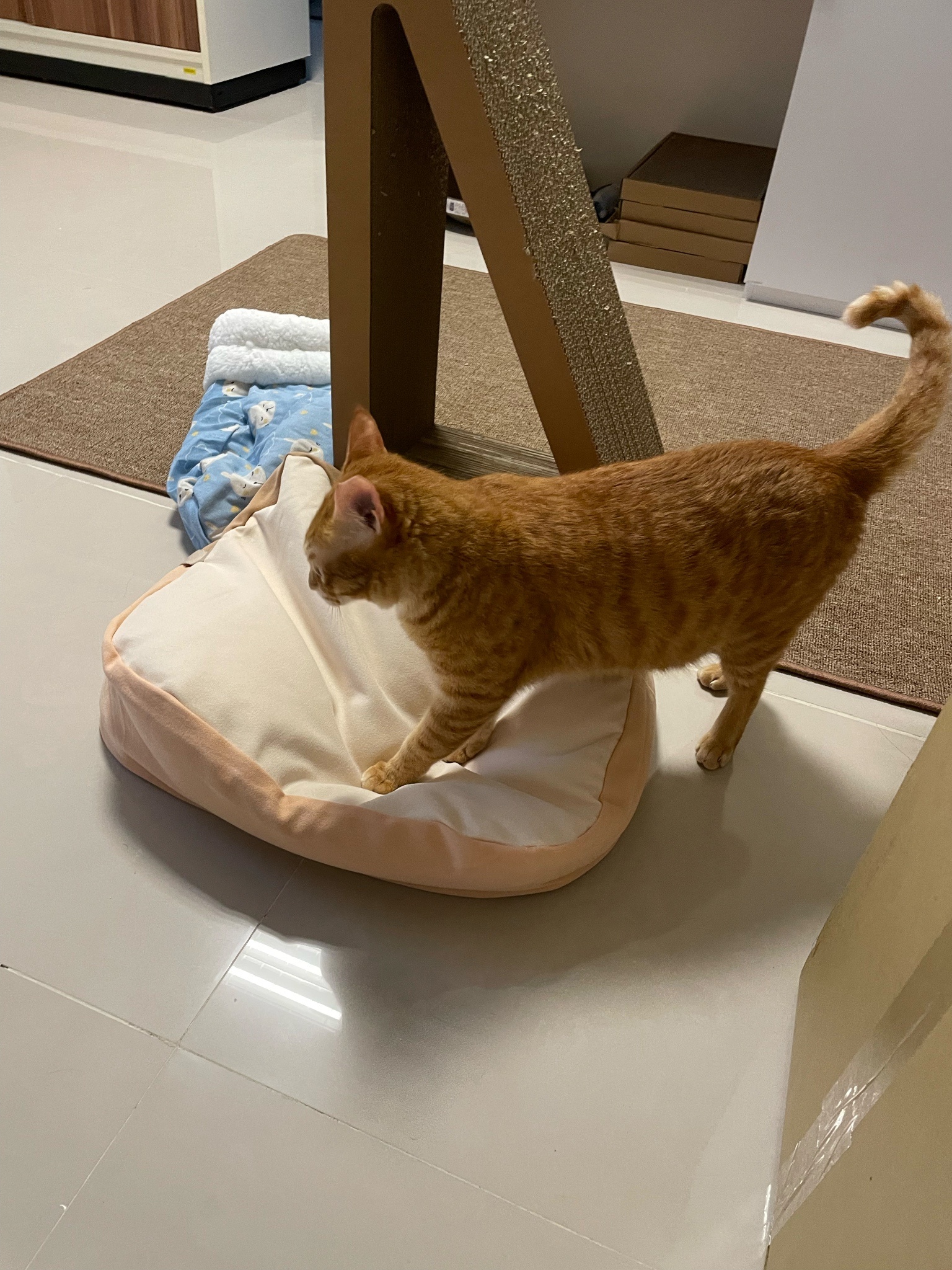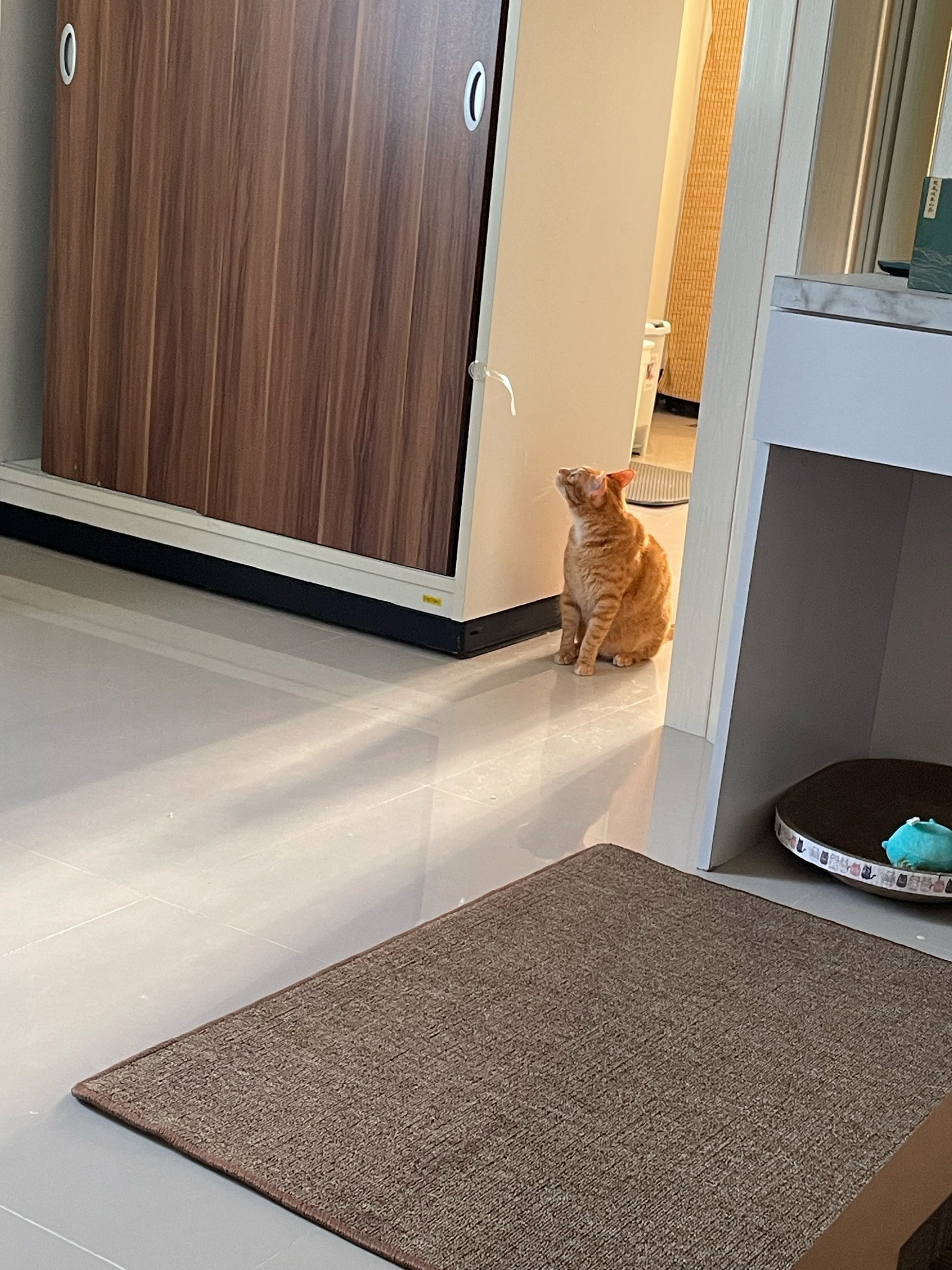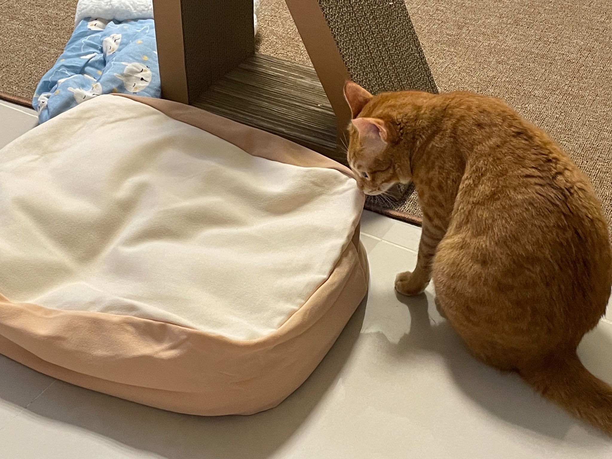 地板都是瓷磚的就買了個貓抓地毯跟貓砂墊給他