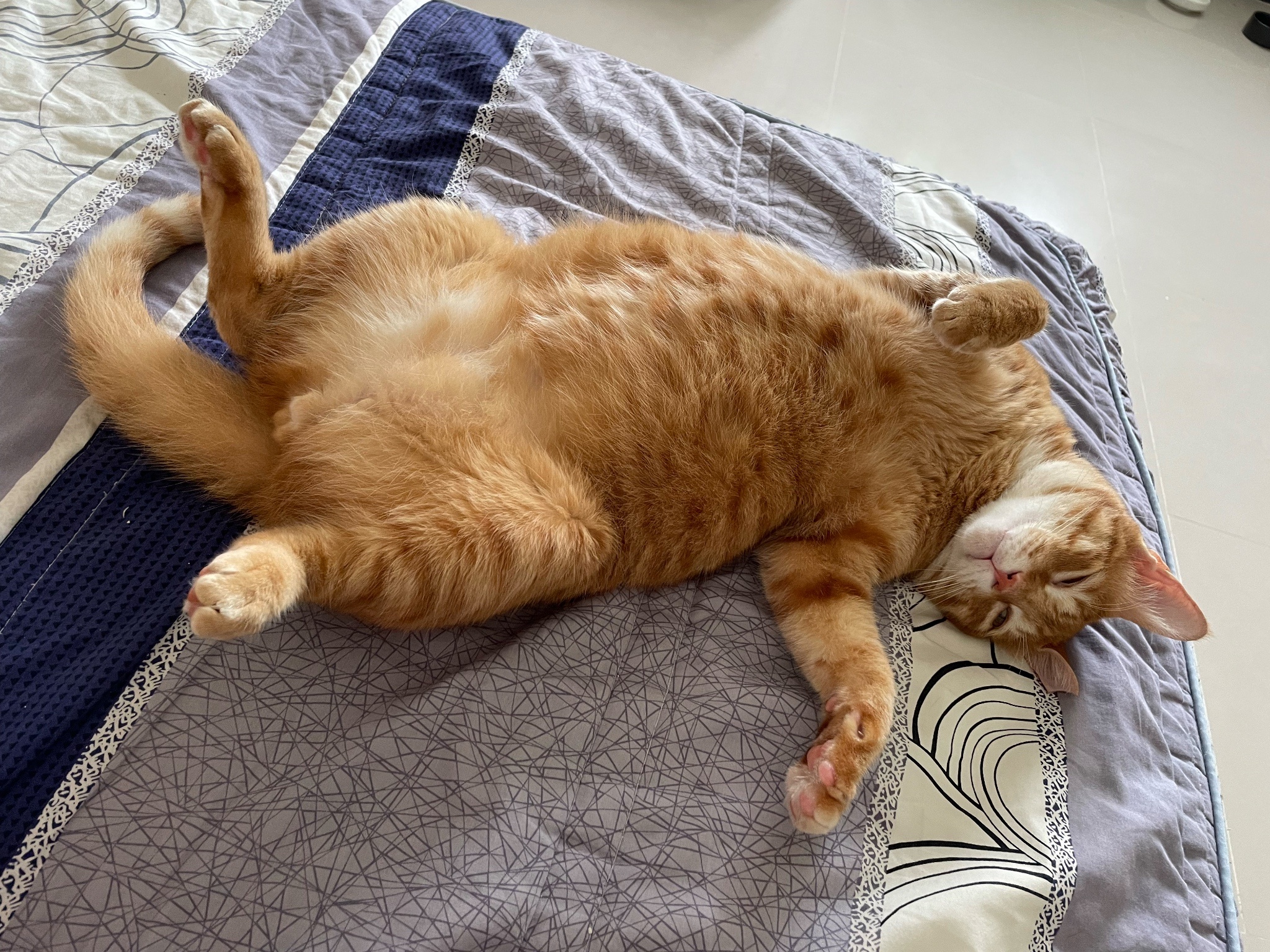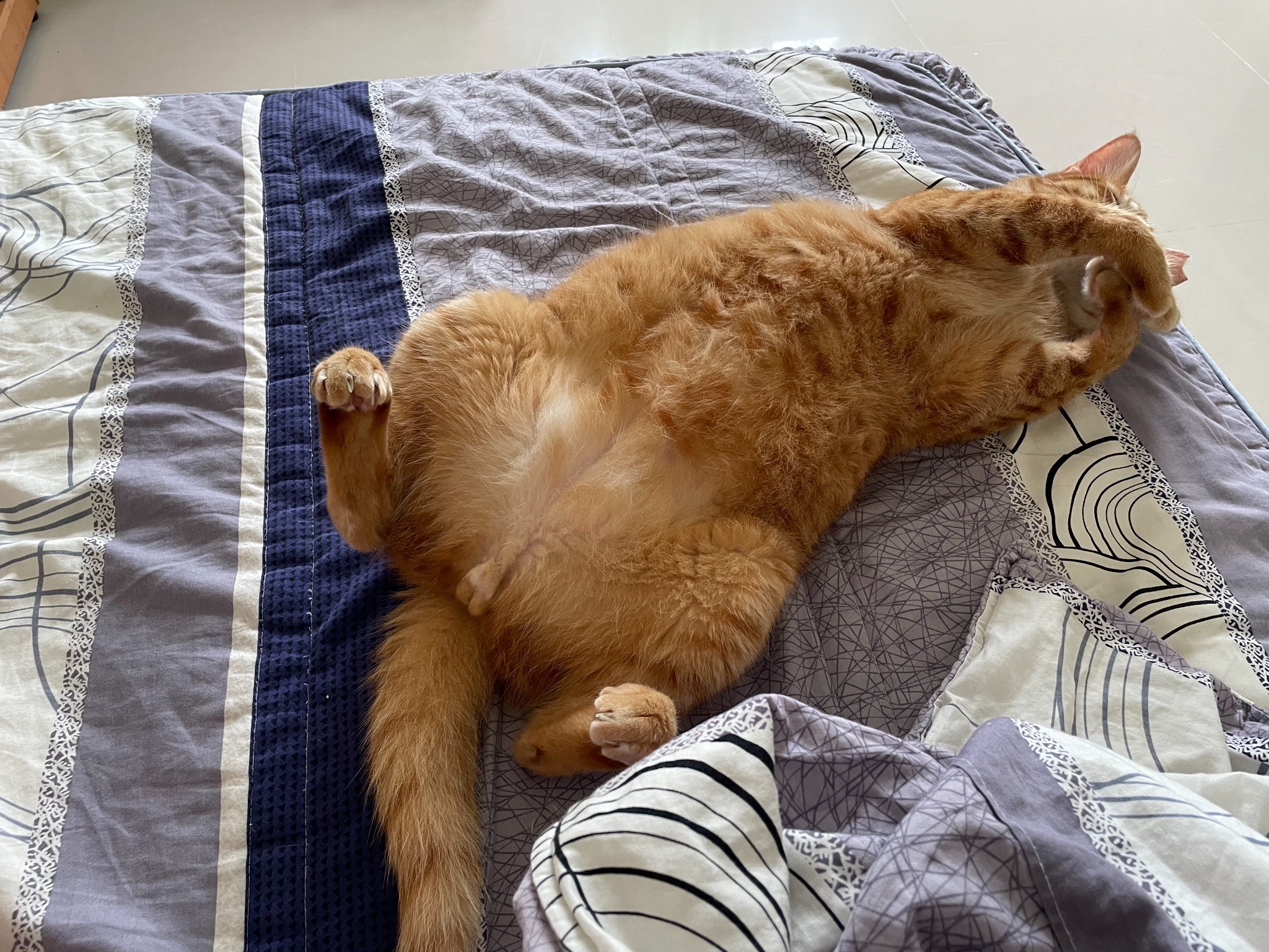 今天睡到翻肚肚