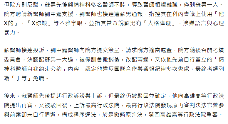 不滿被記過控院方求償國賠60萬 反萊豬醫師蘇偉碩敗訴 - 社會 - 自由時報電子報