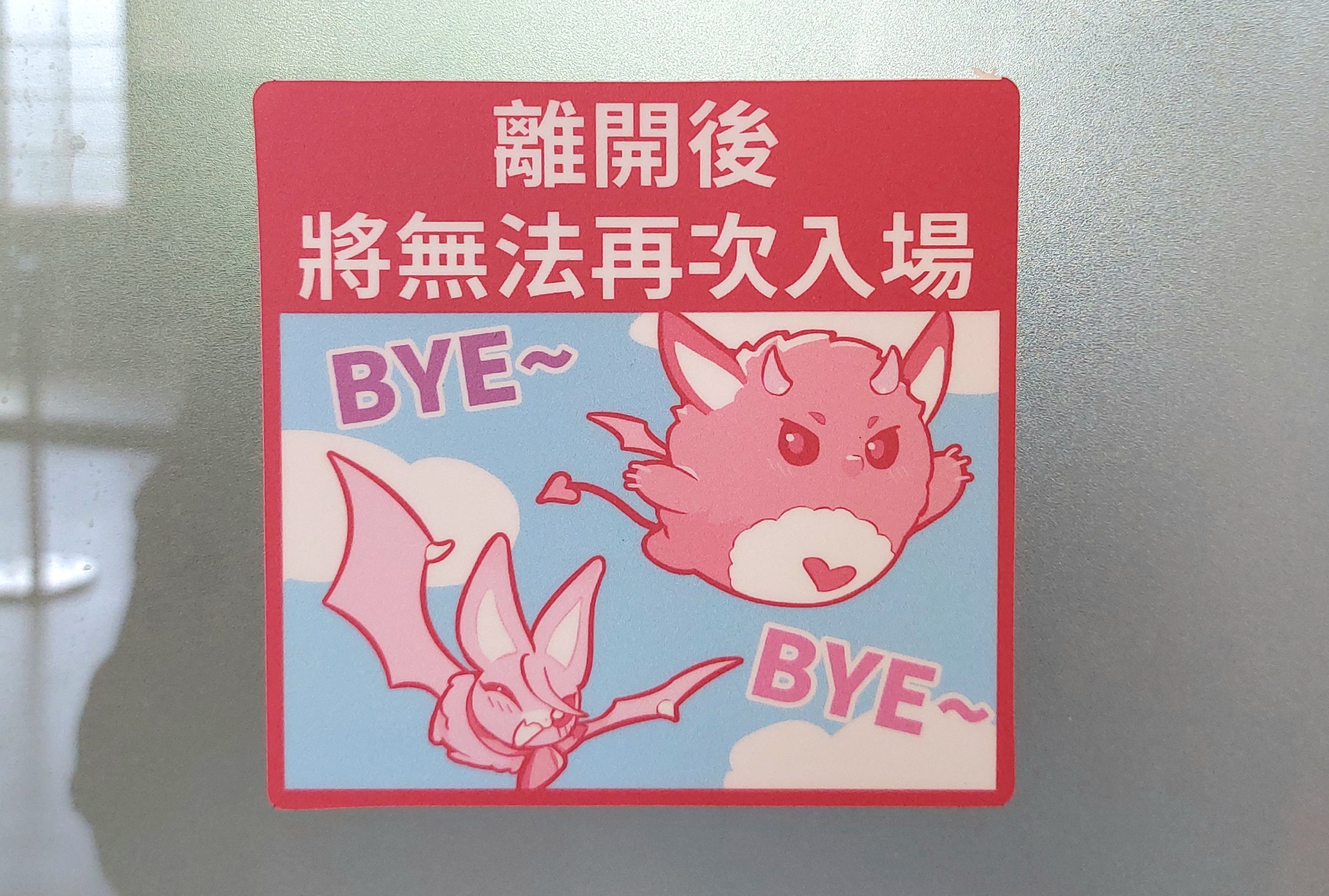 從販賣部離場,門口還貼有使魔蟲蟲型態的小叮嚀