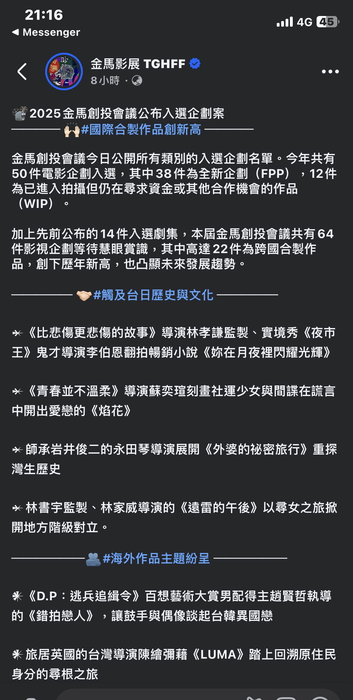 金馬創投這次有永田導演的作品入選耶