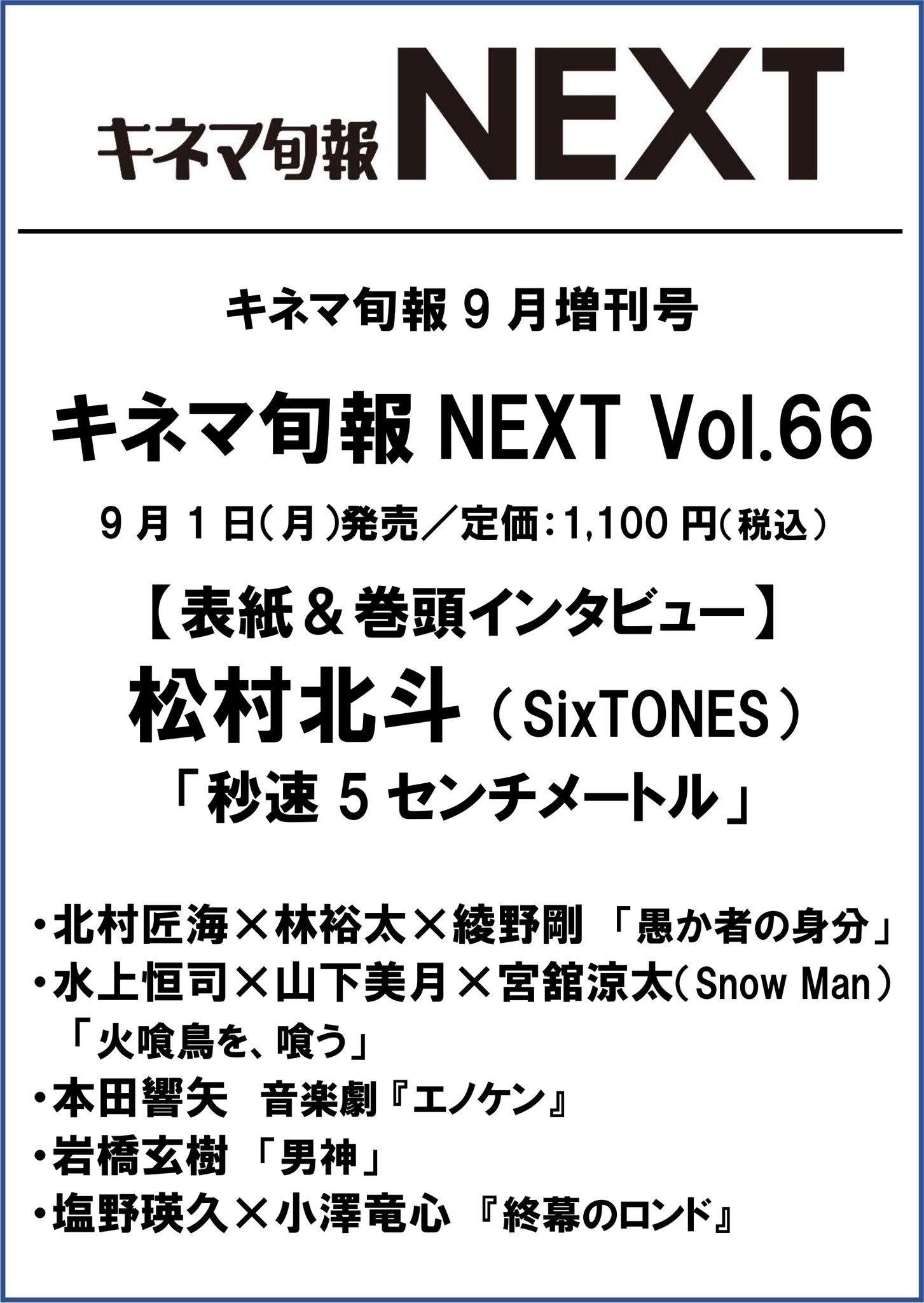 「キネマ旬報NEXT Vol.66」