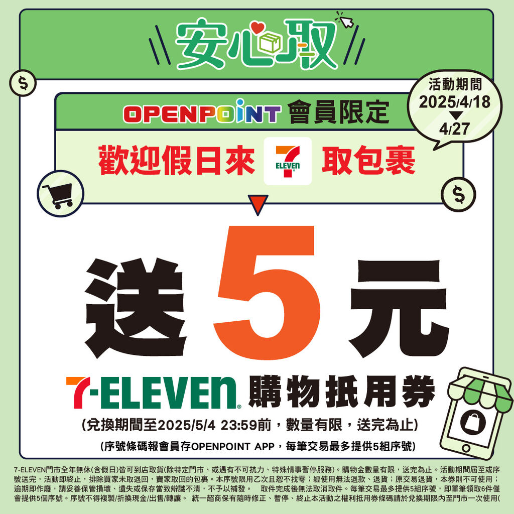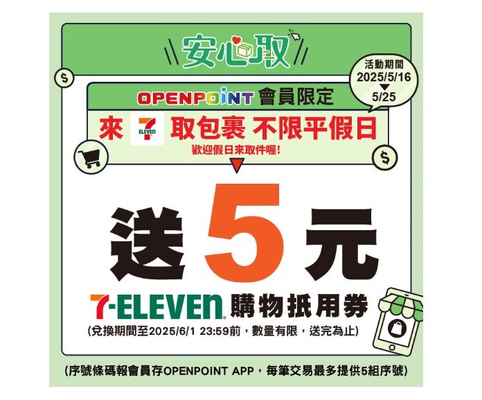 7-11包裹安心取抵用券5元