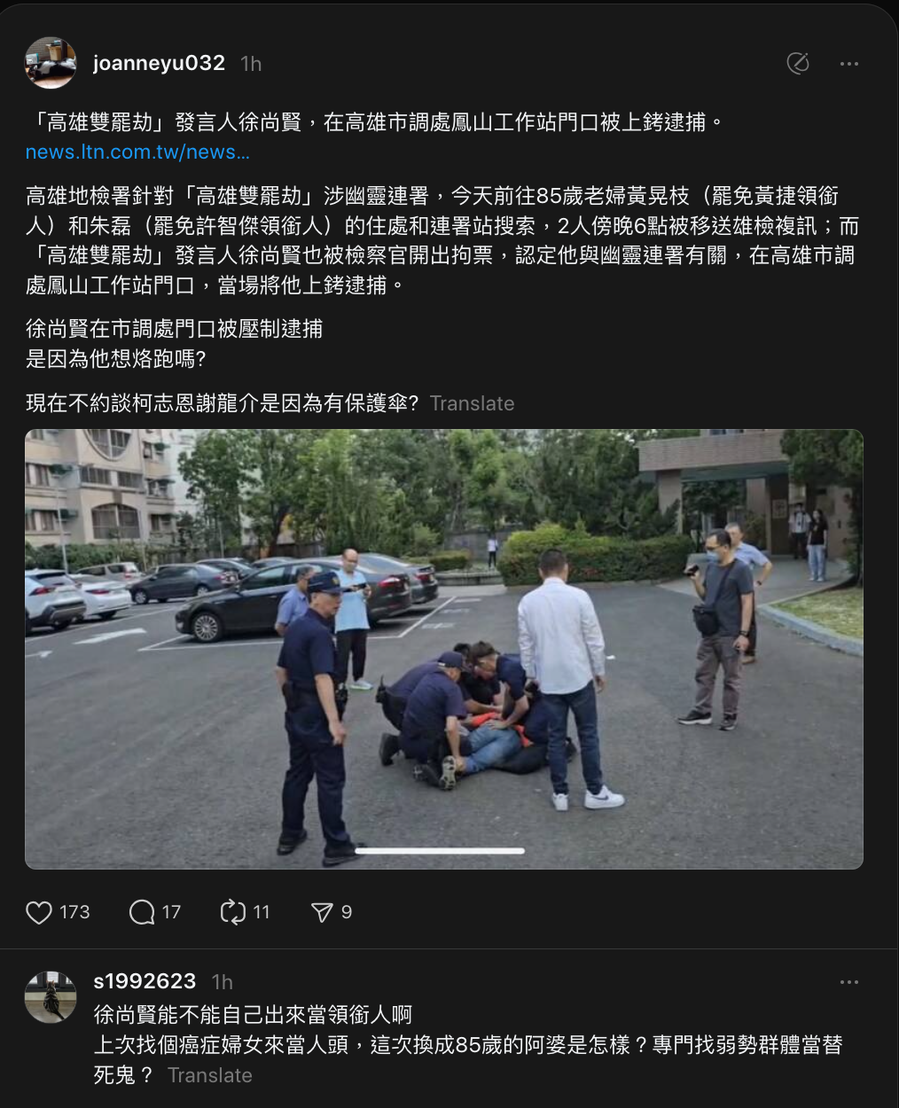 「高雄雙罷劫」發言人徐尚賢被上銬逮捕 2領銜人雄檢複訊 - 社會 - 自由時報電子報