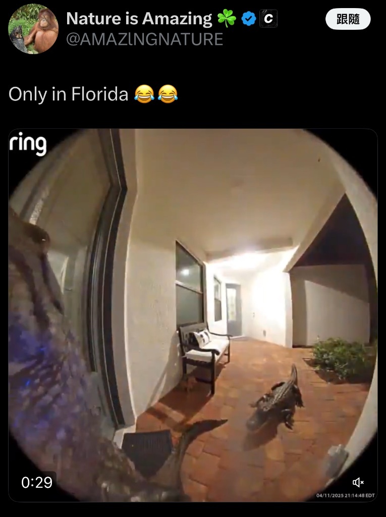 還是台灣好,最多只會有貓狗和猴子來按鈴,最接近的生物了不起也是綠鬣蜥吧(我希望台灣的蛇不會學按門鈴)