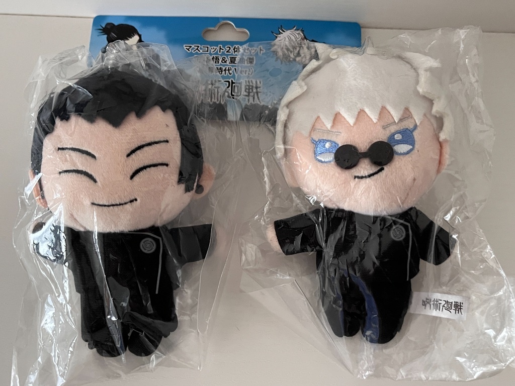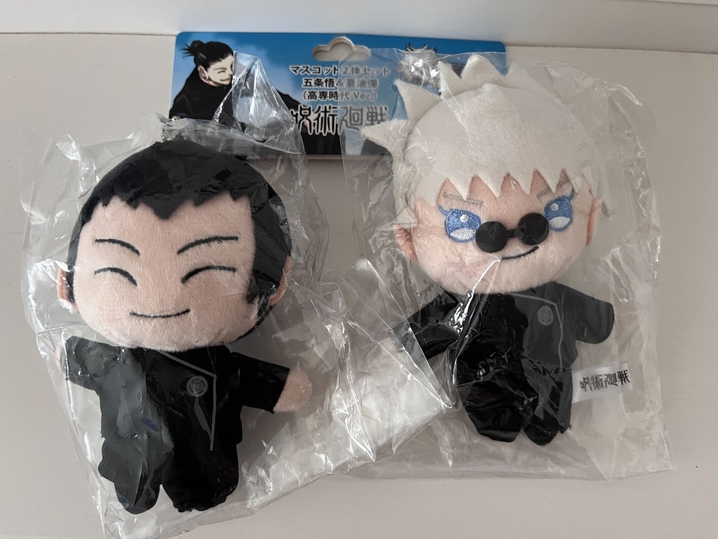 皆全新未拆,JS高專五條夏油娃娃臉有不同,以照片為主。JS娃為年代久遠物,塑膠外袋比較皺、上面的紙片也有些微凹損,如果不介意的話歡迎參考一下