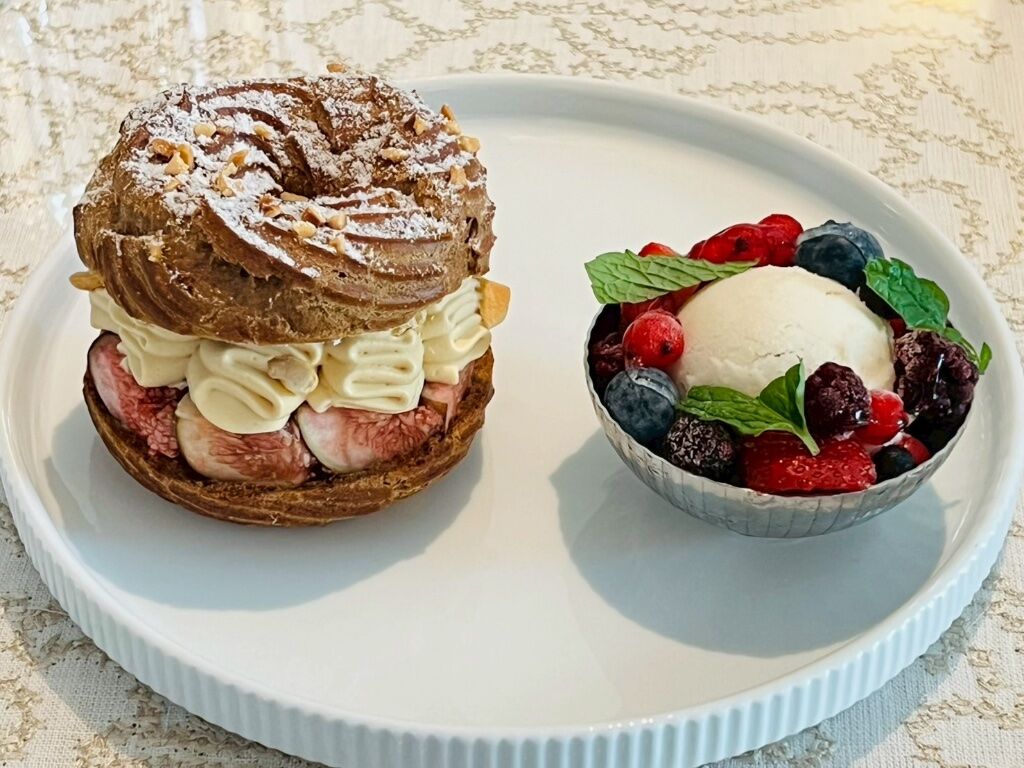 然後三點多快到預約時間,我們就去甜點餐廳問是否可提前入座(看到店內已經空了一半),這個決定真的非常明智😂因為後來三點半同時進來好幾個帶幼兒的家庭,至少候餐時間有錯開