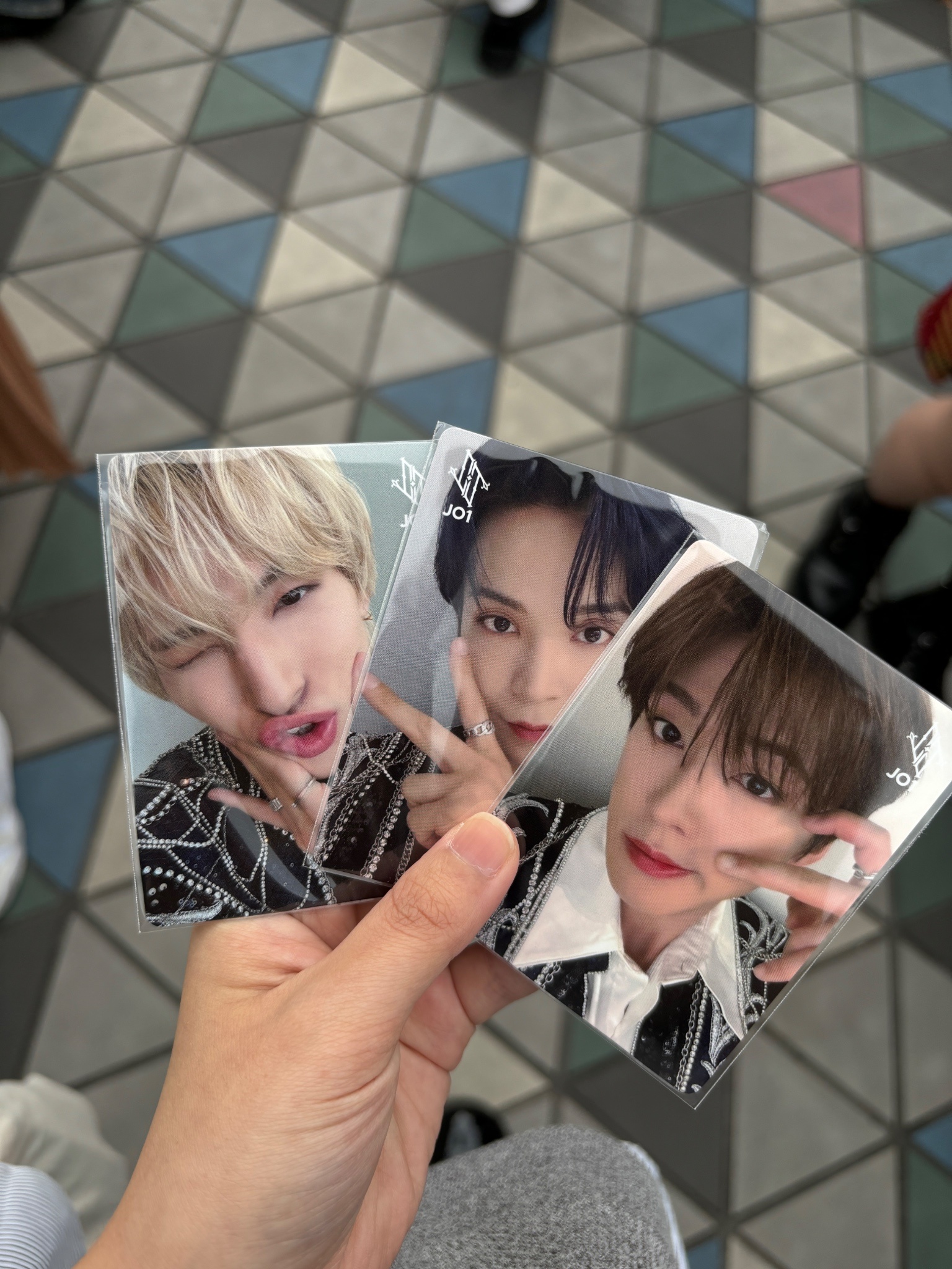 再來在找小卡的途中沒看到我的卡,但撿到一張景瑚汪汪卡,於是把這張小卡拿去給工作人員的途中,看到一位蓮推手上拿著祥生的汪汪卡,就跑去問他要不要換了,本來已經要放棄換卡了,難道掉五張專輯小卡是祭品嗎(