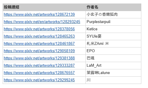 pixiv的合作企劃第一彈所抽出的十位得獎者如下!