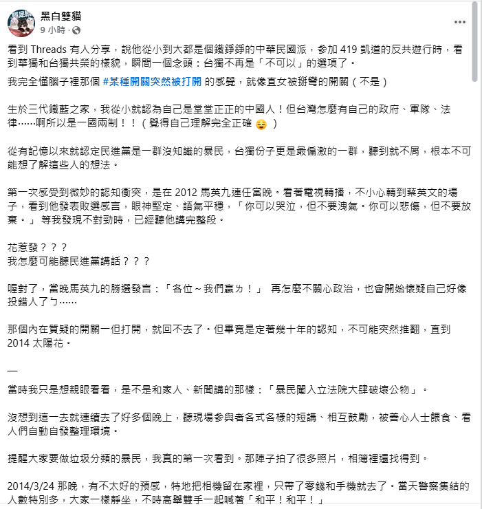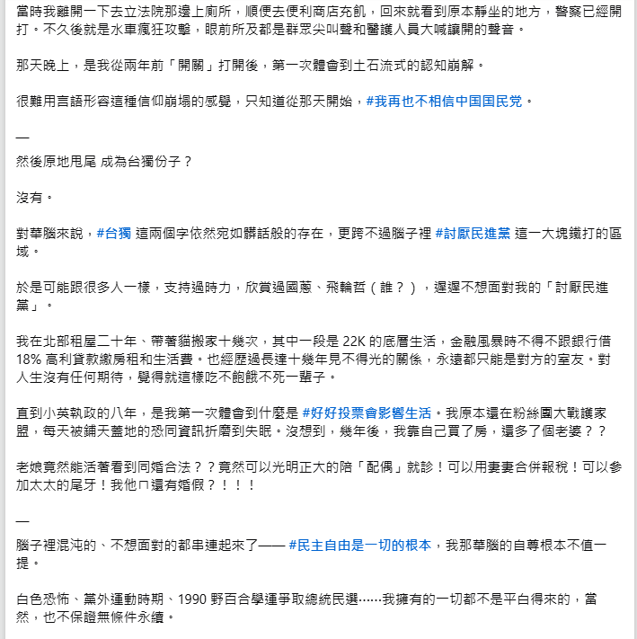 真希望更多藍營選民能有這樣的覺醒....