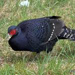 黃源明今天告訴中央社記者,4月19日的阿里山植物園草地上有一隻黑長尾雉(帝雉)在草叢間覓食,突然之間,發現黑長尾雉吃的津津有味,靠近一看,原來有遊客將吃不完的地瓜棄置草叢,吸引黑長尾雉聞香而來。