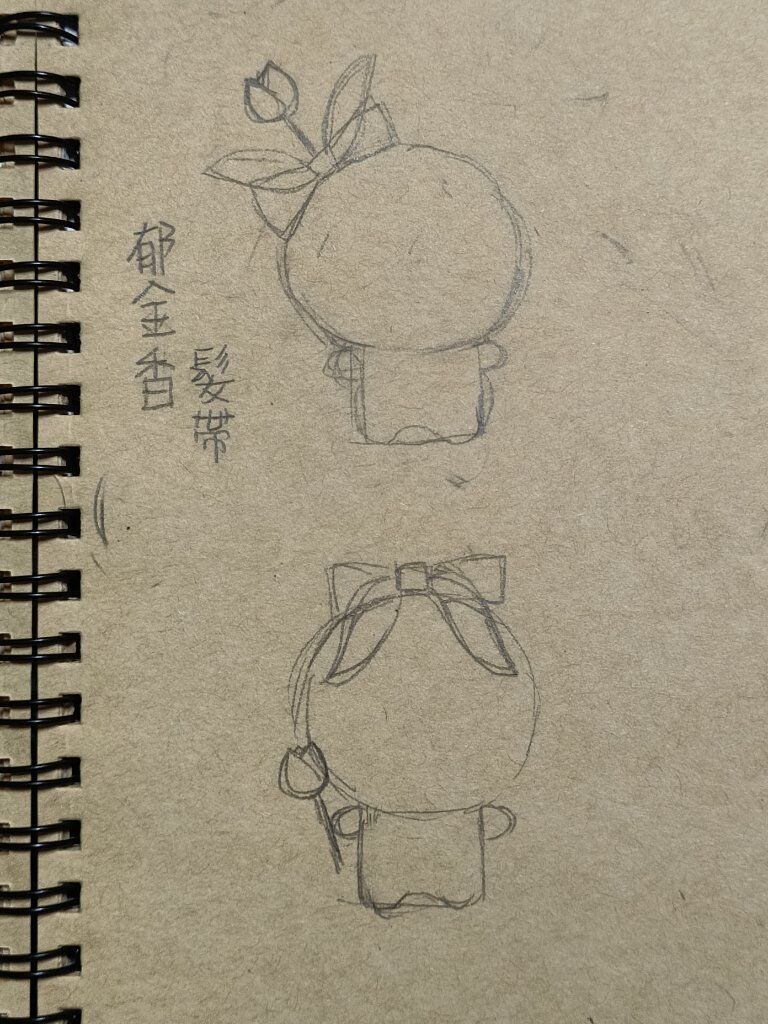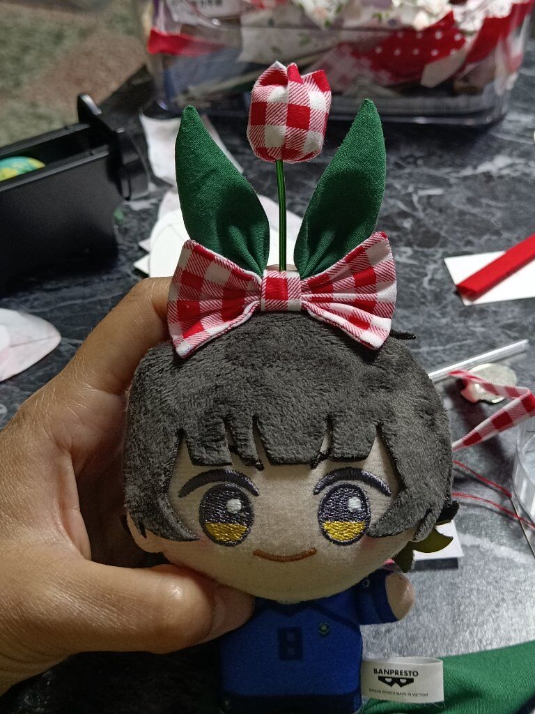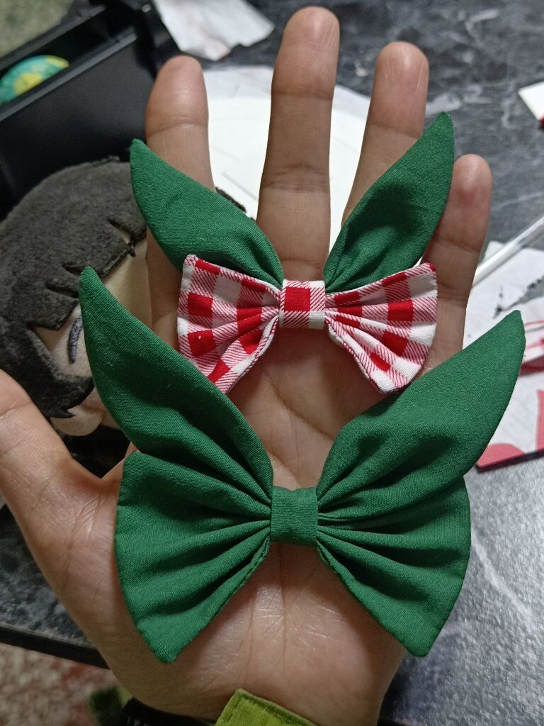 兔耳葉蝴蝶結的前世,兔耳其實是鬱金香的葉子,當初是想做可拆卸的鬱金香蝴蝶結,可以讓瓦娃把鬱金香頂在頭上也可以手持,被親友評價超沒有意義的怪東西,最後把鬱金香的元素拿掉就變成現在這樣ㄌ