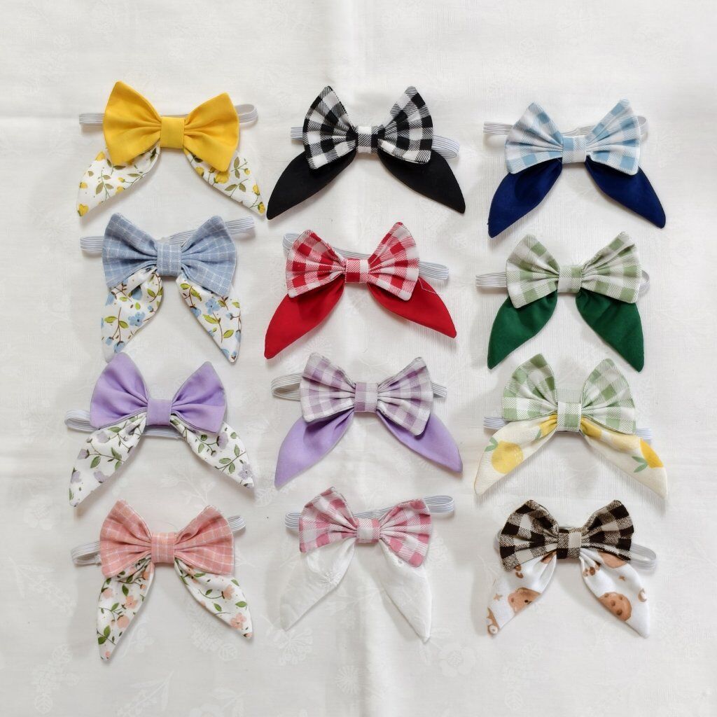 本來兔耳葉蝴蝶結只打算做幾款常規的格紋+純色組合的,但剪布過程覺得加入碎花布的搭配也好可愛,款式就一下子爆增了