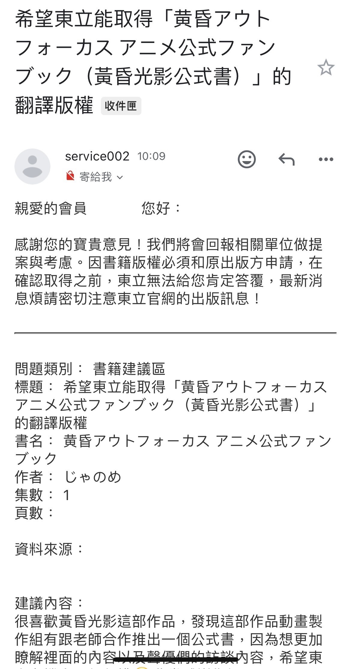 今天收到東立回覆了 哎⋯我去收日版好了⋯⋯公式書不一定要有中文版沒關係,但殘影我真得好想要台版 上次再版量太少了嗚嗚嗚嗚,讓地方仁義媽咪了結這個心願吧