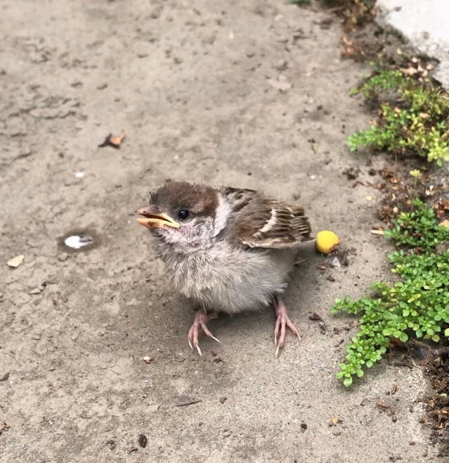 前天傍晚有麻雀幼鳥掉在我家門前