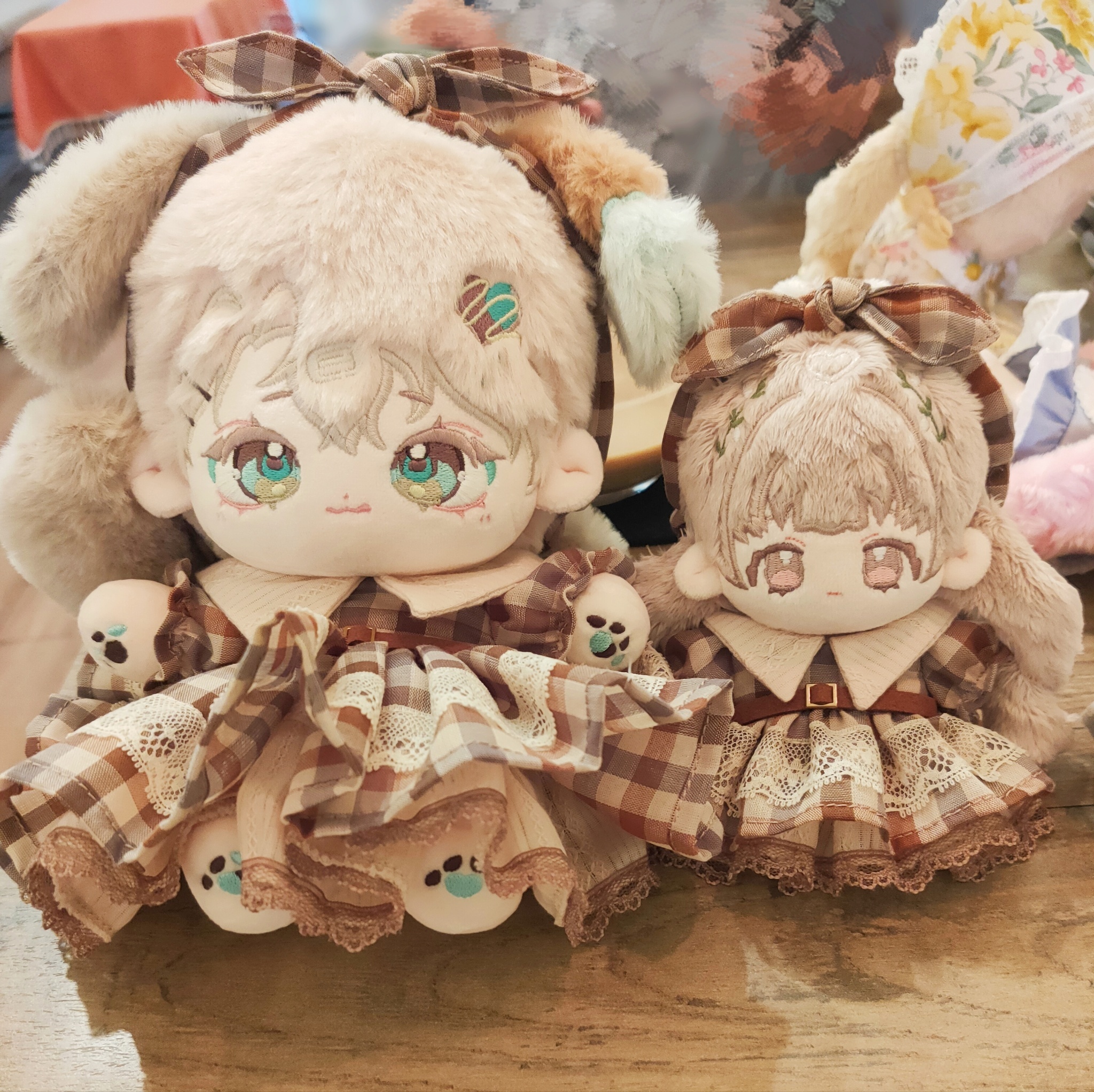 想到要拍的時候已經先動手了出門前跟太太許願想試穿她的娃衣,太太就帶了好幾套過來了~