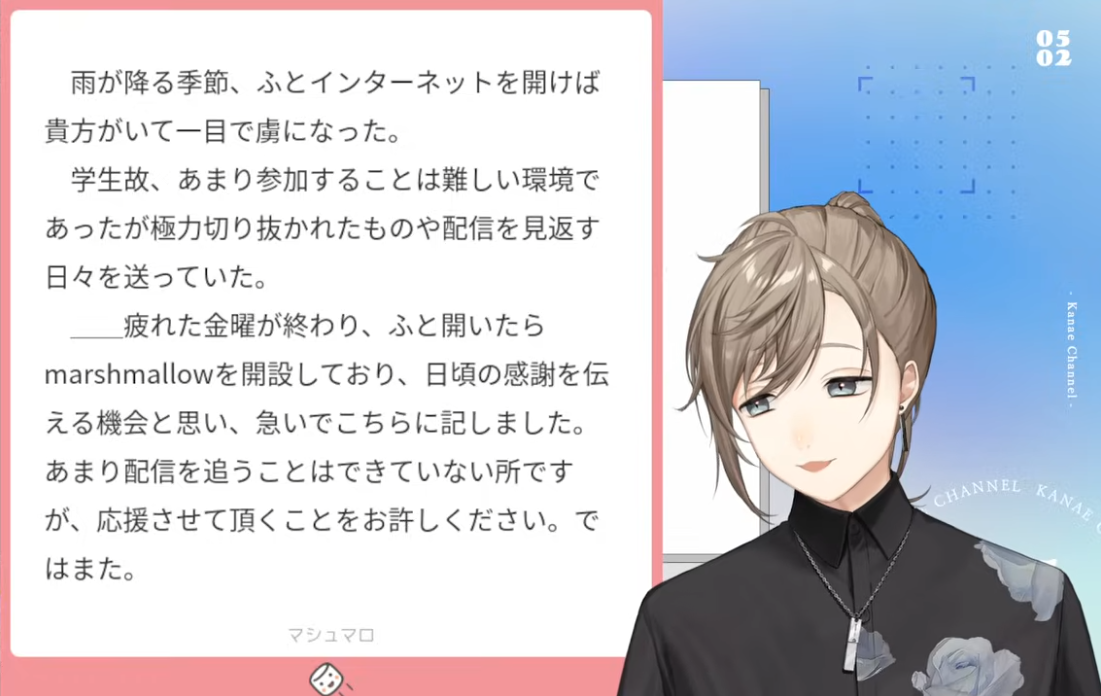 大致上是說原本不看V的,但從kn開始除了接觸箱內之外也接觸了很多箱外的實況主