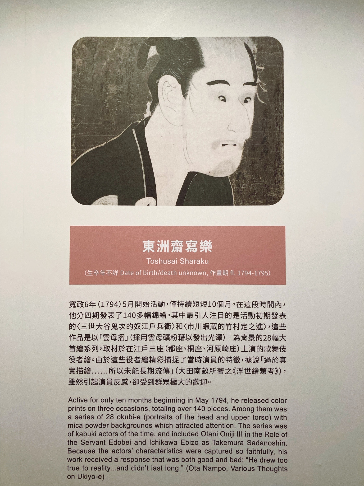 展場內燈光昏暗,浮世繪一枚尺寸不大,作品名牌也小小的,觀賞時覺得有點吃力,人一多只能隨意瀏覽,好在走第二趟時人較少才能靜下心觀看