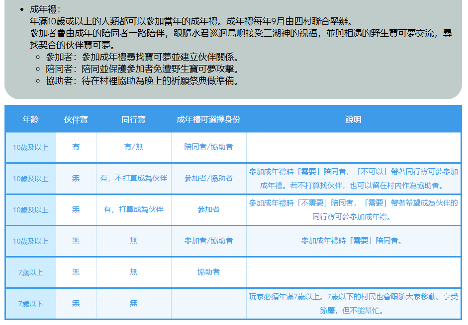另外,成年者在成年禮中也相當重要,詳細已經補充在玩家守則。感謝提問!