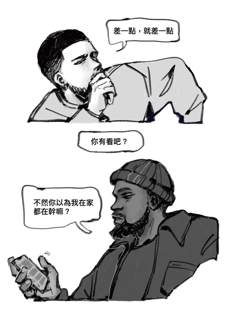 總之短漫的背景就是在今年在MSG輸給紐約尼克的隔日回到了鳳凰城,基本上就是我在消費自己的主隊,Book嘴巴會受傷就是在對尼克的時候吃了我們家哈特一個手肘居然還沒被吹,躺在地上一陣子還得起來回防OG...(真抱歉)賽後嘴巴還看起來腫起來了