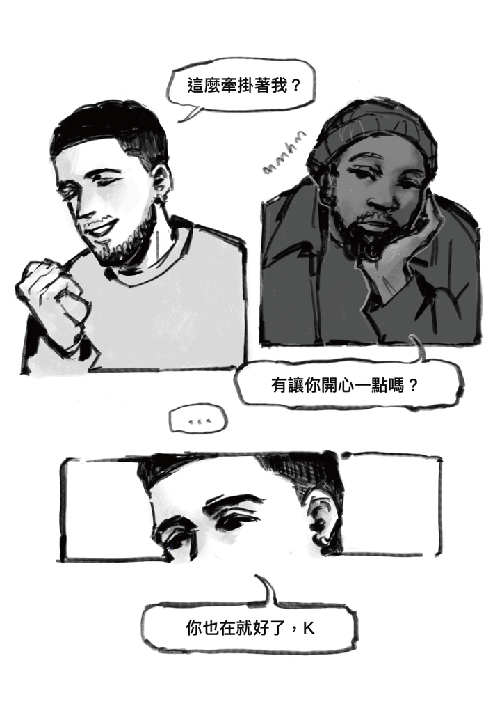 可以配Injury Reserve的Outside,其實是蠻沈重的歌,喜歡主唱混亂思緒的呢喃,除了IR就剛好是亞利桑納的團體之外,也因為他們的這張專輯叫做By the Time I Get to Phoenix(原曲內容是一個不告而別的故事)其實原本短漫的故事想走得更悲傷但想想還是不要吧(...) 另外KD最後對Book說的話翻譯成英文會是Let's go outside, the sun is setting.