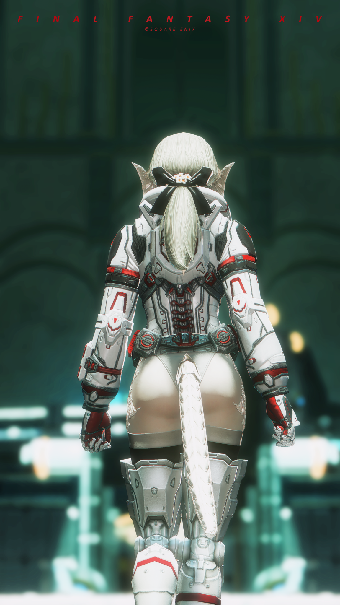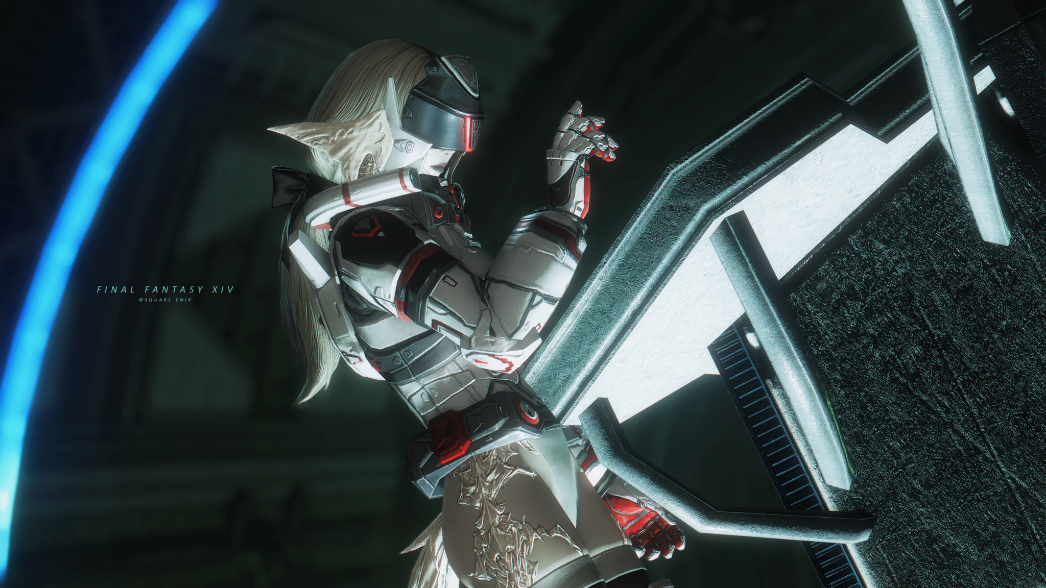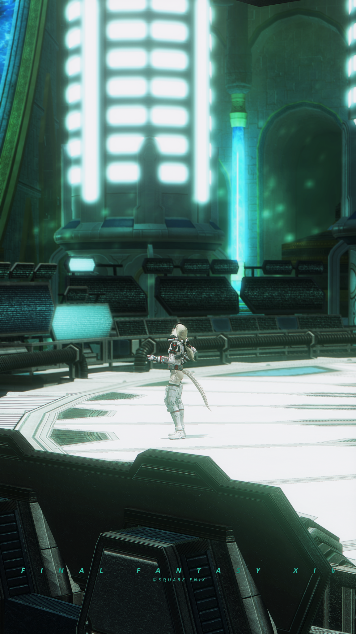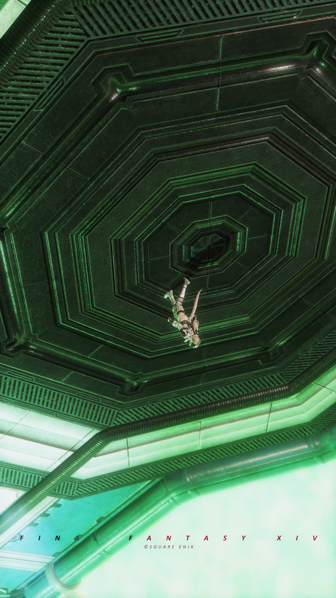 又配了新衣服!因為主線還在6.0沒有七版那種fancy fancy超現代的地方能去,隨便從5版副本開了一個看起來也算高科技的地點拍一拍,邊拍邊想到如果空中漂浮一些爛肉屍體......就好像