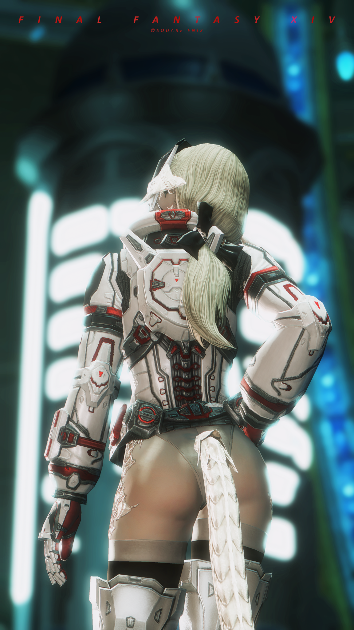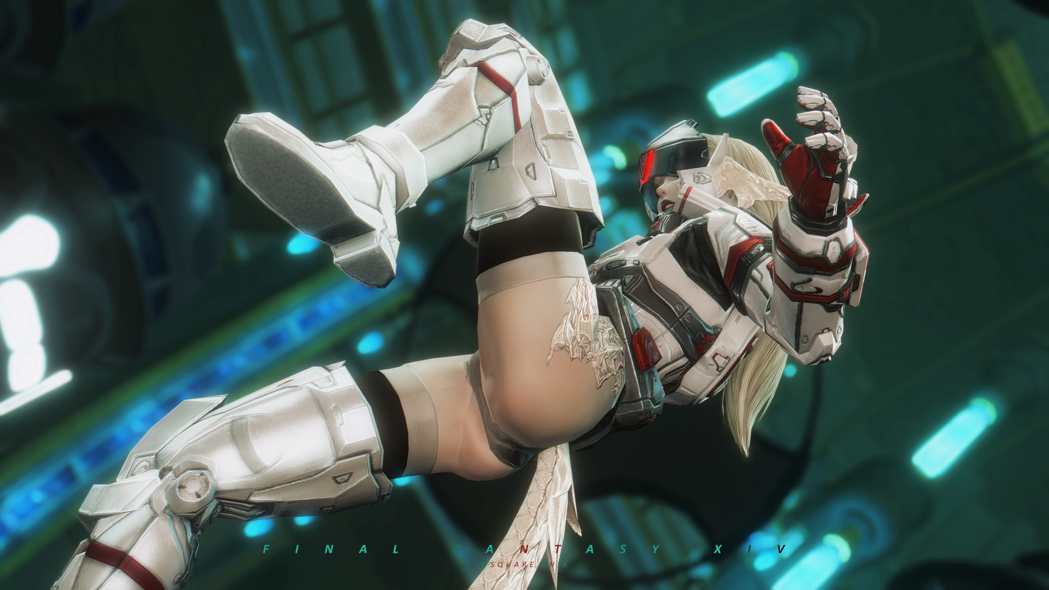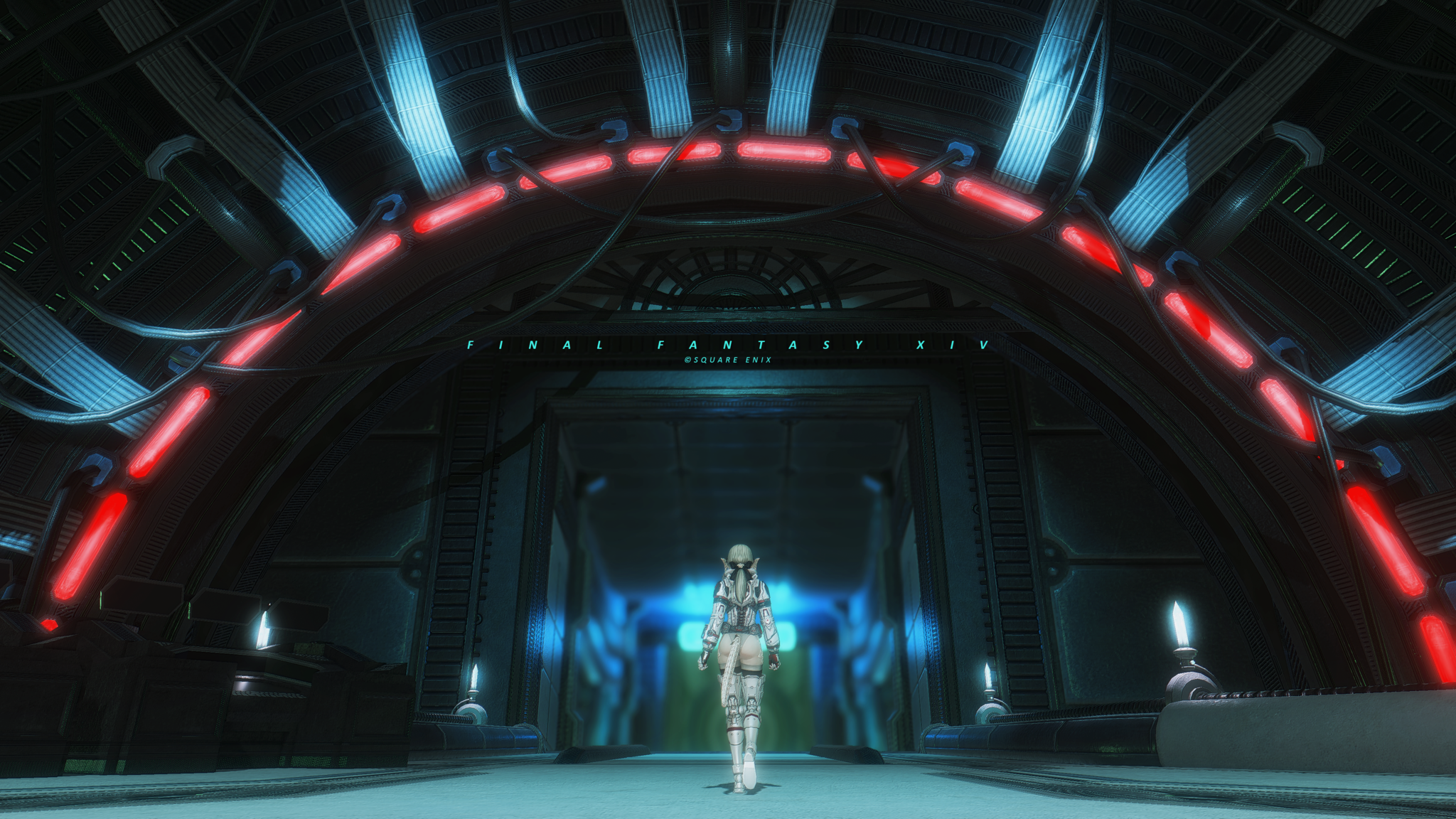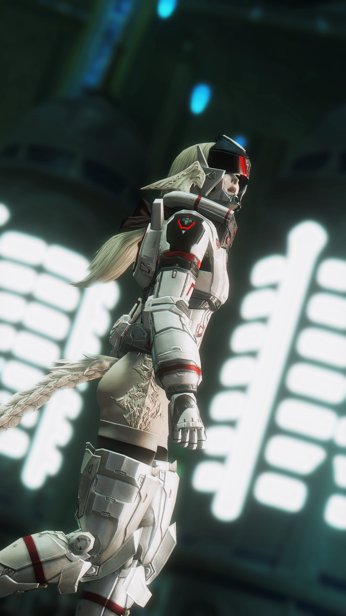 又配了新衣服!因為主線還在6.0沒有七版那種fancy fancy超現代的地方能去,隨便從5版副本開了一個看起來也算高科技的地點拍一拍,邊拍邊想到如果空中漂浮一些爛肉屍體......就好像